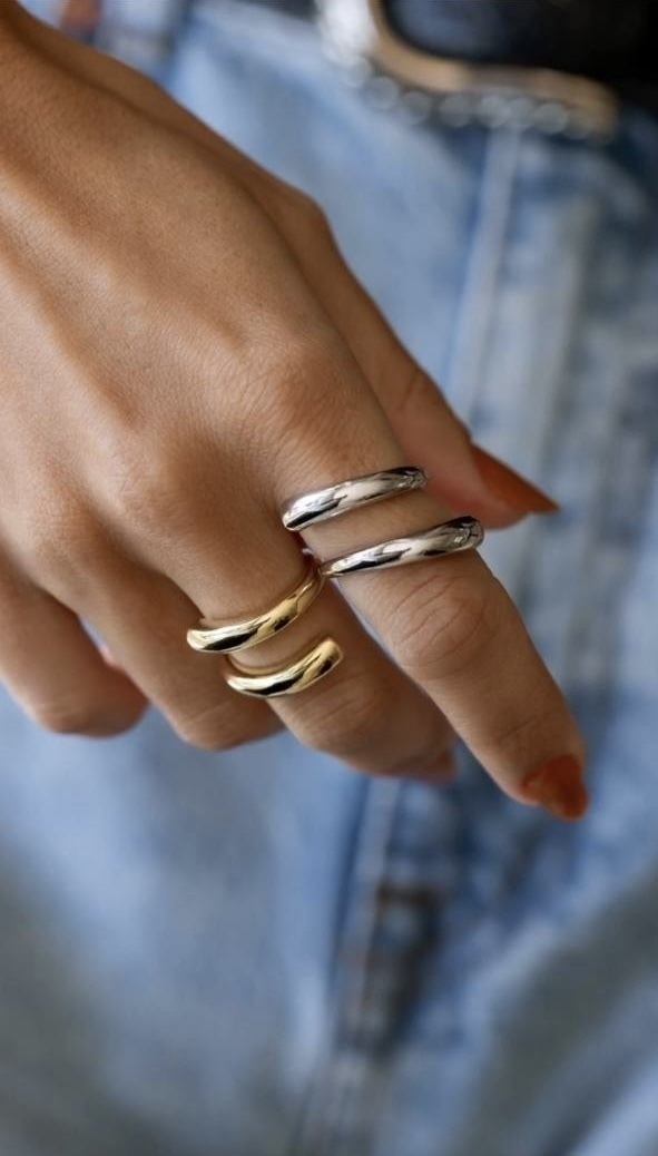 ANEL DE MODELO REGULÁVEL COM DUAS VOLTAS EM ACABAMENTO POLIDO LISO. DISPONÍVEL NO BANHO DE OURO 18K E RÓDIO BRANCO.