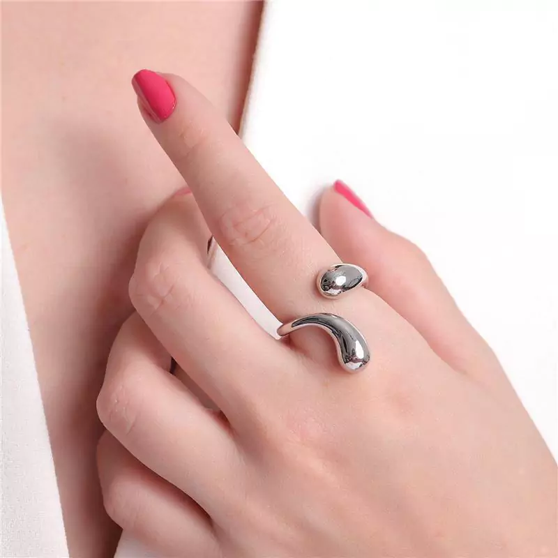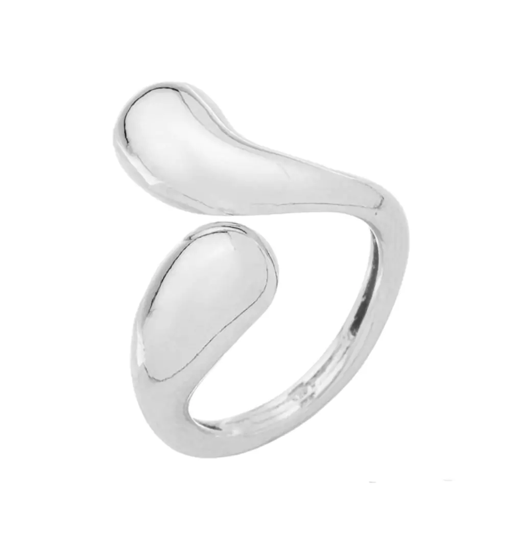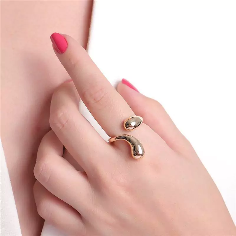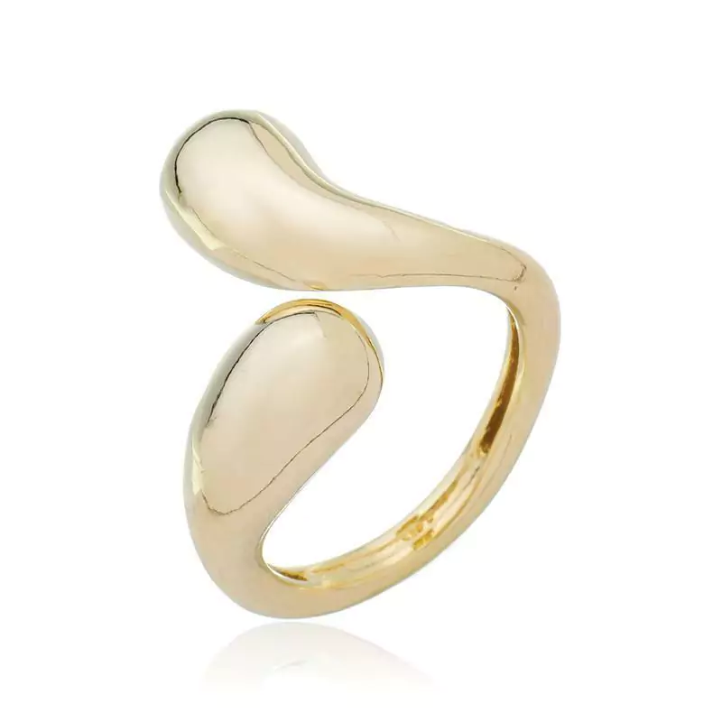 ANEL DE MODELO REGULÁVEL COM DETALHE EM FORMATO GOTA NO ACABAMENTO LISO. DISPONÍVEL NO BANHO DE OURO 18K E RÓDIO BRANCO.