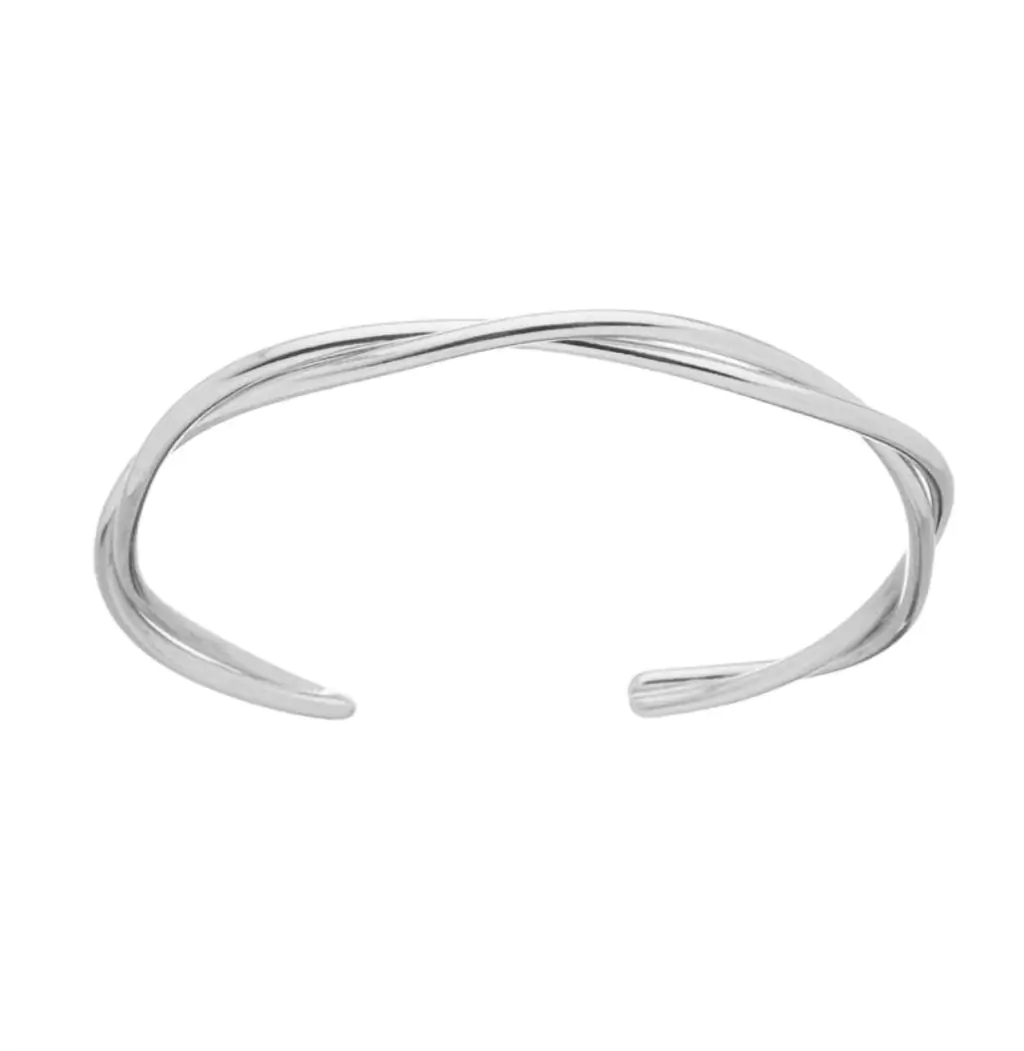 BRACELETE LISO COM DOIS FIOS TRANÇADOS. DISPONÍVEL NO BANHO DE OURO 18K E RÓDIO BRANCO.
