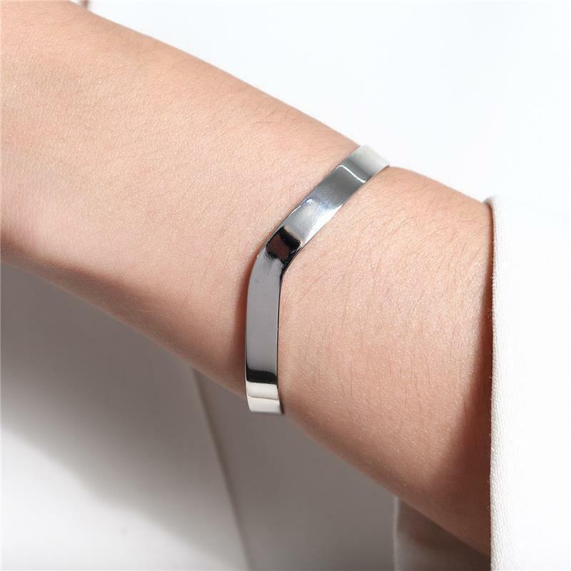 BRACELETE LISO COM A BASE MAIS LARGA EM FORMATO ONDULADO. DISPONÍVEL NO BANHO DE OURO 18K E RÓDIO BRANCO.