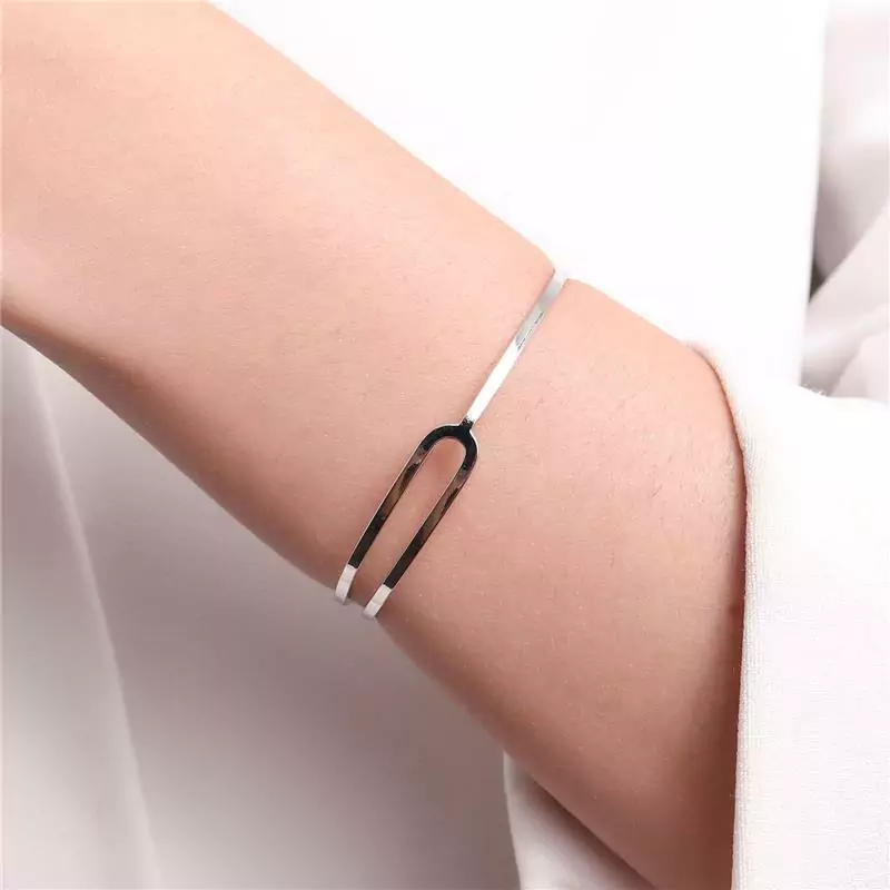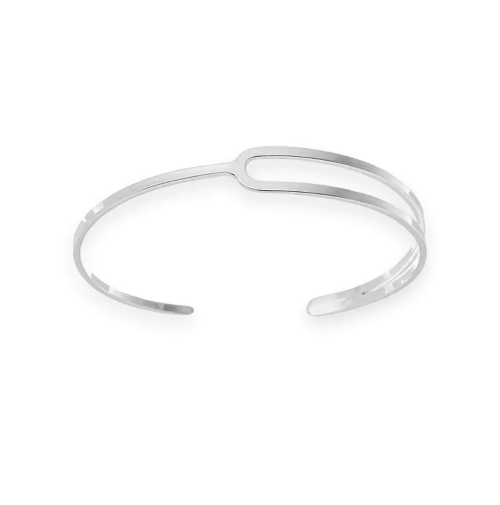 BRACELETE COM DETALHE DUPLO EM ACABAMENTO POLIDO LISO, VESTE BEM TANTO O PULSO FINO QUANTO O PULSO MAIS LARGO. DISPONÍVEL NO BANHO DE OURO 18K E RÓDIO BRANCO.