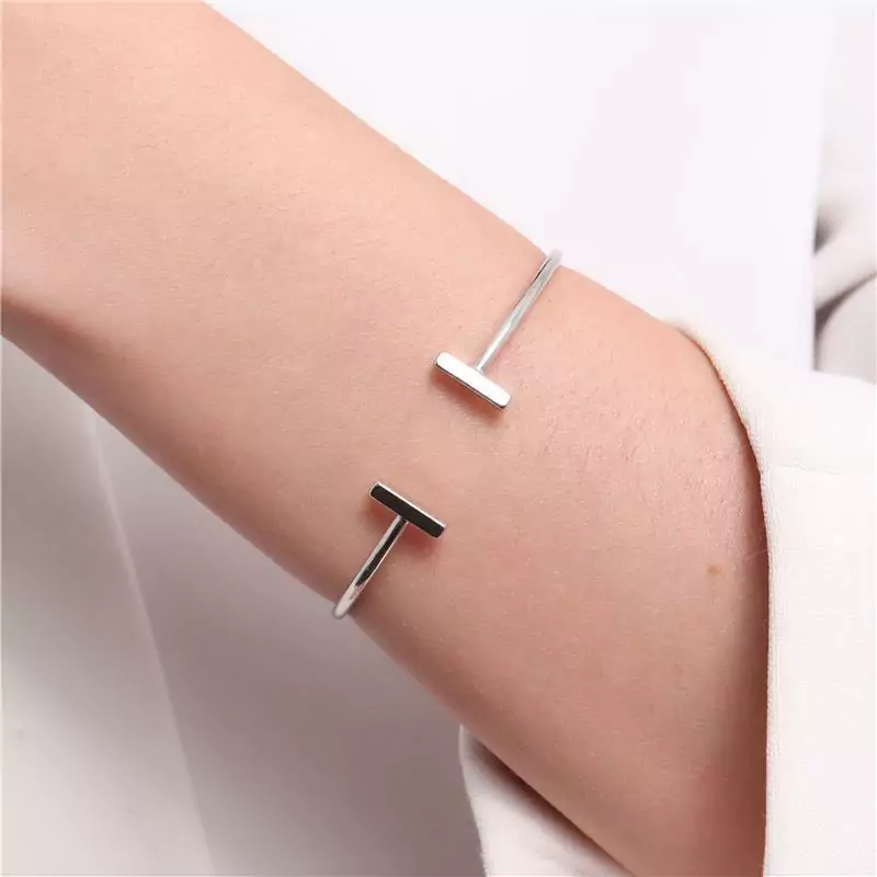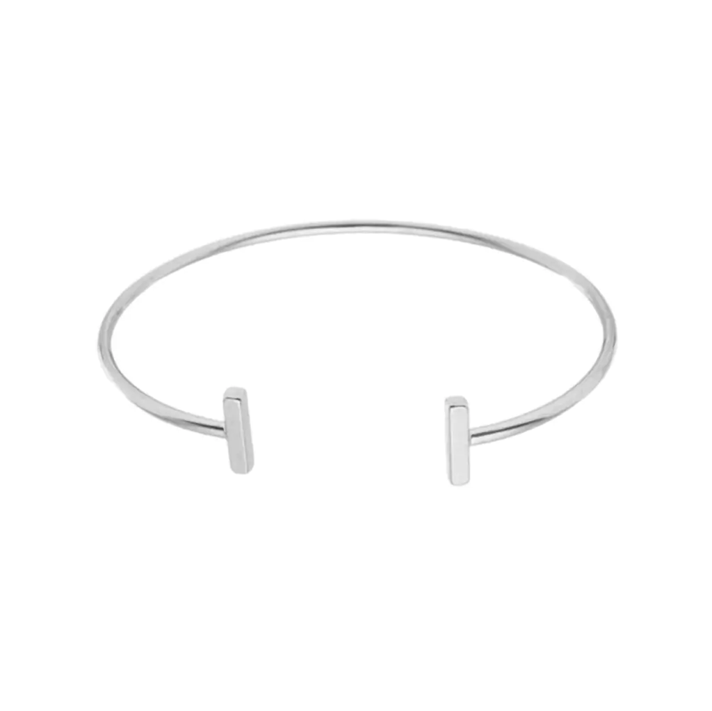 BRACELETE LISO COM DETALHE NAS PONTAS. DISPONÍVEL NO BANHO DE OURO 18K E RÓDIO BRANCO.