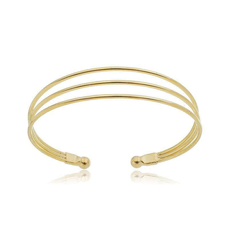 BRACELETE COM TRÊS LINHAS FINAS E PONTEIRAS REDONDAS, MODELO QUE VESTE BEM TANTO O PULSO FINO QUANTO O PULSO MAIS LARGO. DISPONÍVEL NO BANHO DE OURO 18K E RÓDIO BRANCO.