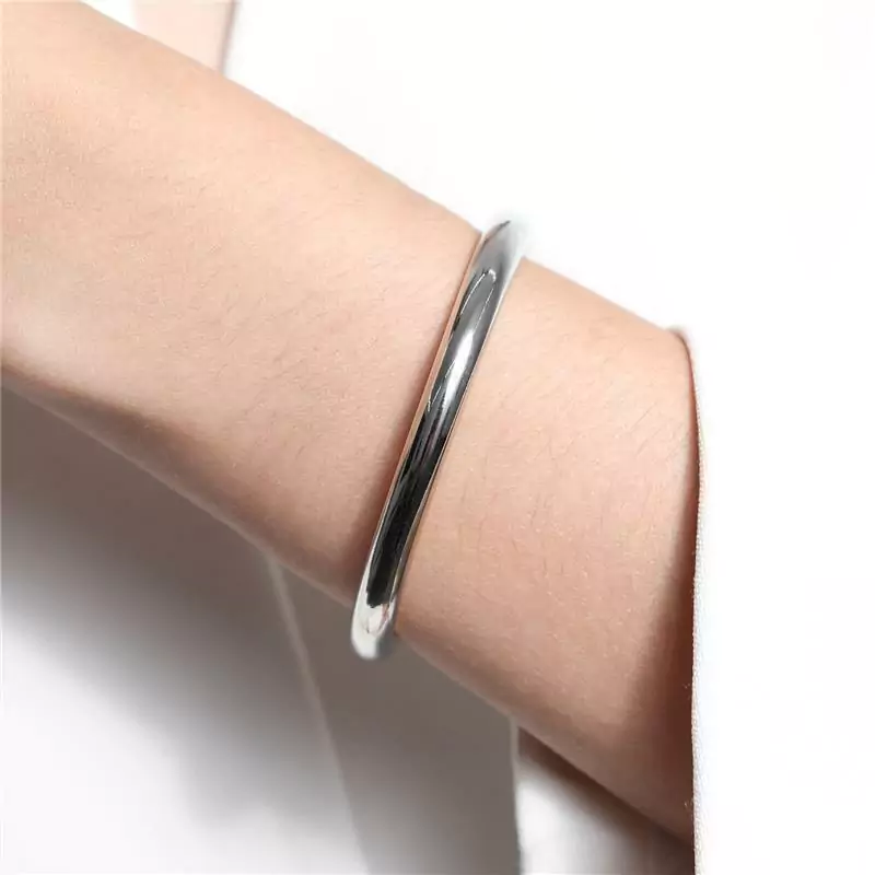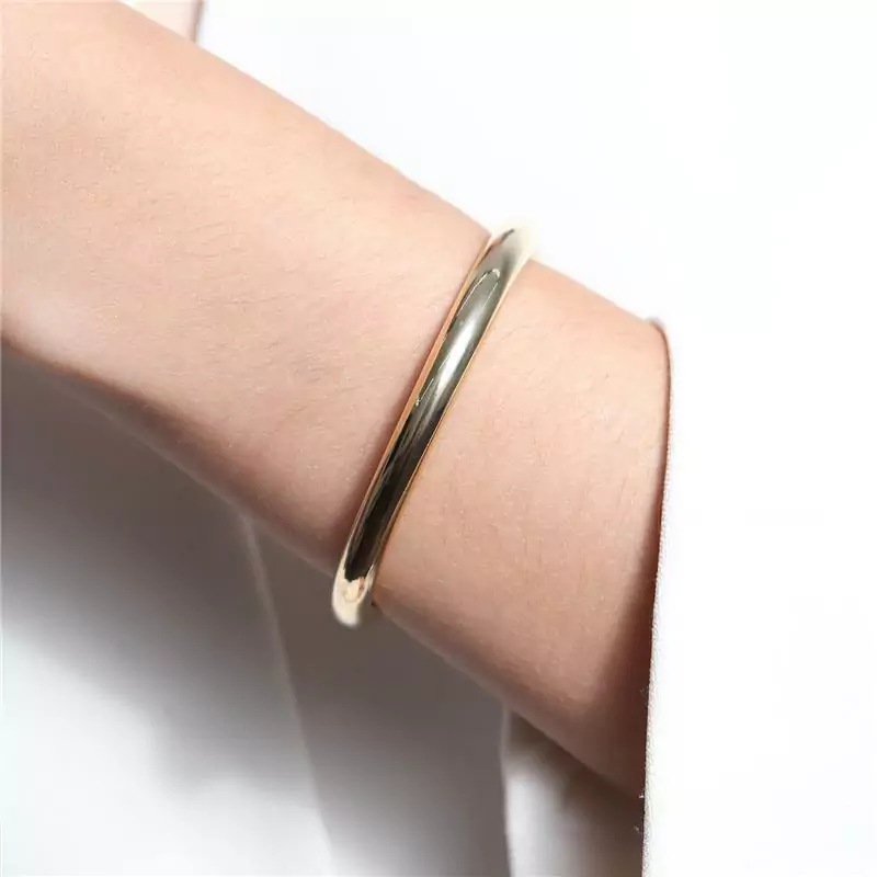 BRACELETE EM ACABAMENTO TUBULAR LISO. VESTE BEM TANTO O PULSO FINO (CONSEGUE ABERTAR) QUANTO O MAIS LARGO. DISPONÍVEL NO BANHO DE OURO 18K E RÓDIO BRANCO.