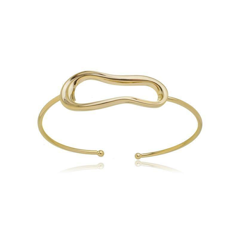 BRACELETE COM DETALHE OVAL VAZADO EM FORMATO ORGÂNICO, MODELO QUE VESTE BEM TANTO O PULSO FINO QUANTO O PULSO MAIS LARGO. DISPONÍVEL NO BANHO DE OURO 18K E RÓDIO BRANCO.
