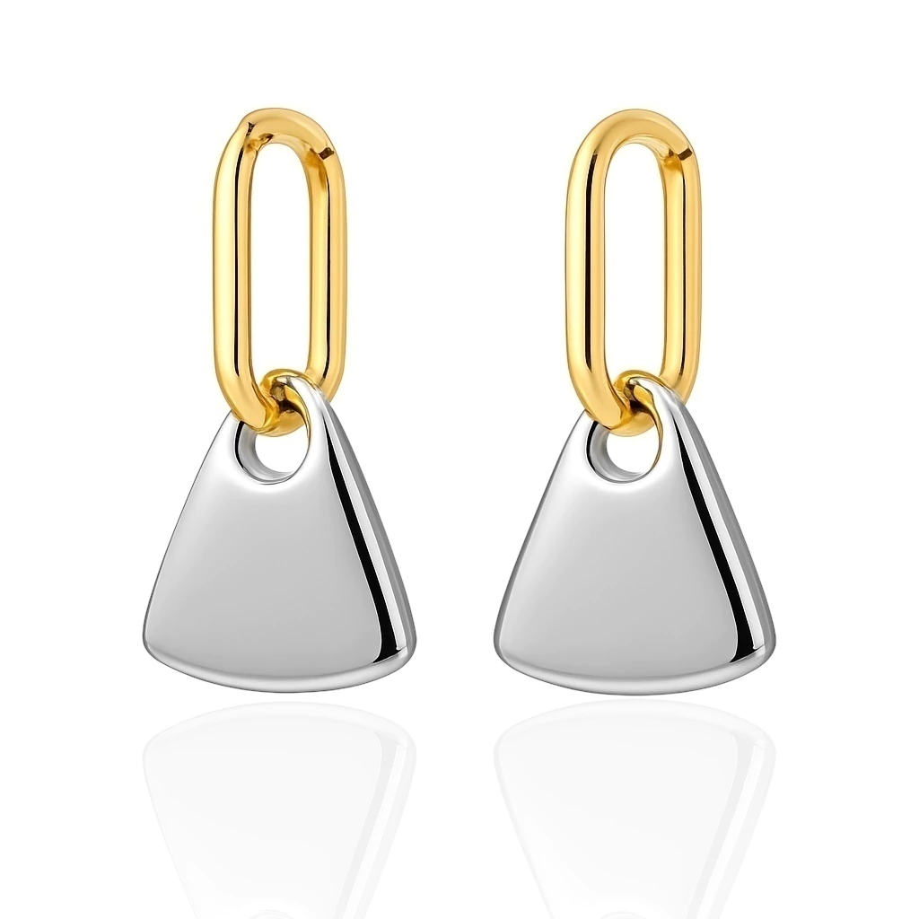 BRINCO NO MODELO ARGOLA COM DETALHE PENDENTE COM MISTURA DE BANHOS (OURO E RÓDIO BRANCO) EM ACABAMENTO POLIDO LISO.