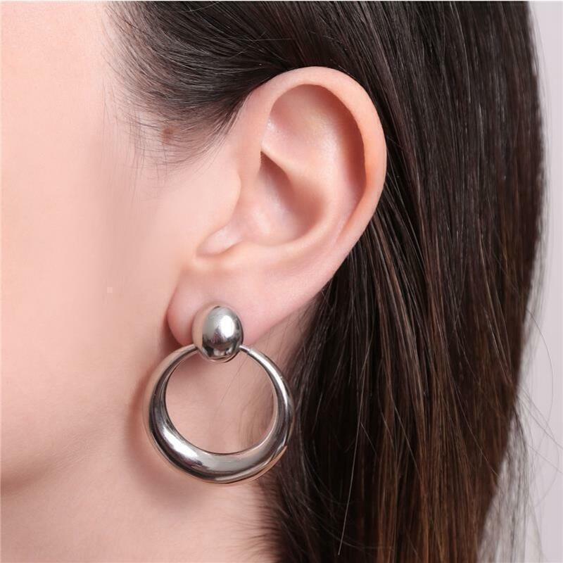 BRINCO COM ARGOLA LISA PENDENTE E BASE OVAL, LEVE E CONFORTÁVEL . DISPONÍVEL NO BANHO DE OURO 18K E RÓDIO BRANCO.