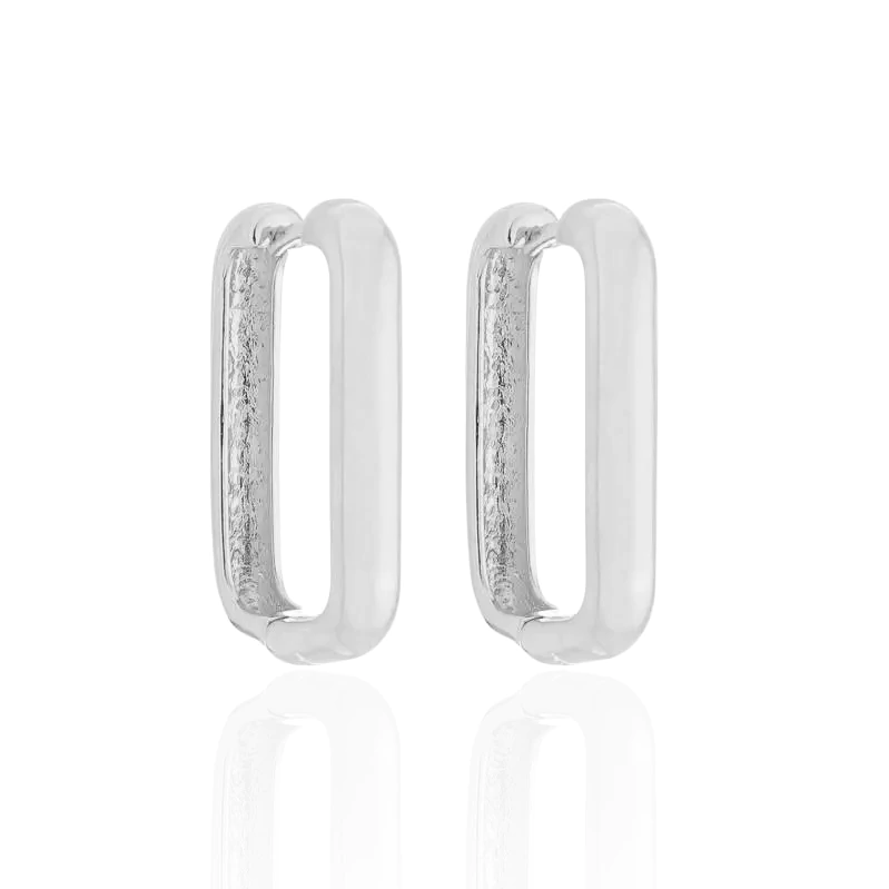 BRINCO MODELO ARGOLA DE TAMANHO MÉDIO EM FORMATO RETANGULAR NO ACABAMENTO POLIDO LISO, LEVE E EXTREMAMENTE CONFORTÁVEL. DISPONÍVEL NO BANHO DE OURO 18K E RÓDIO BRANCO.