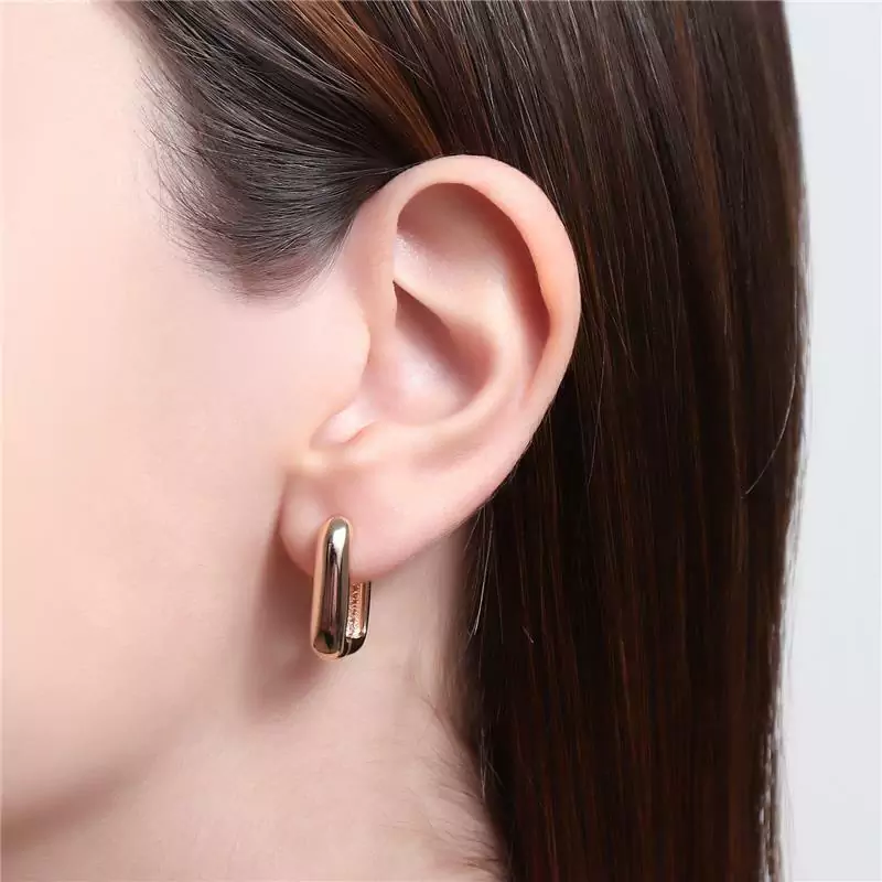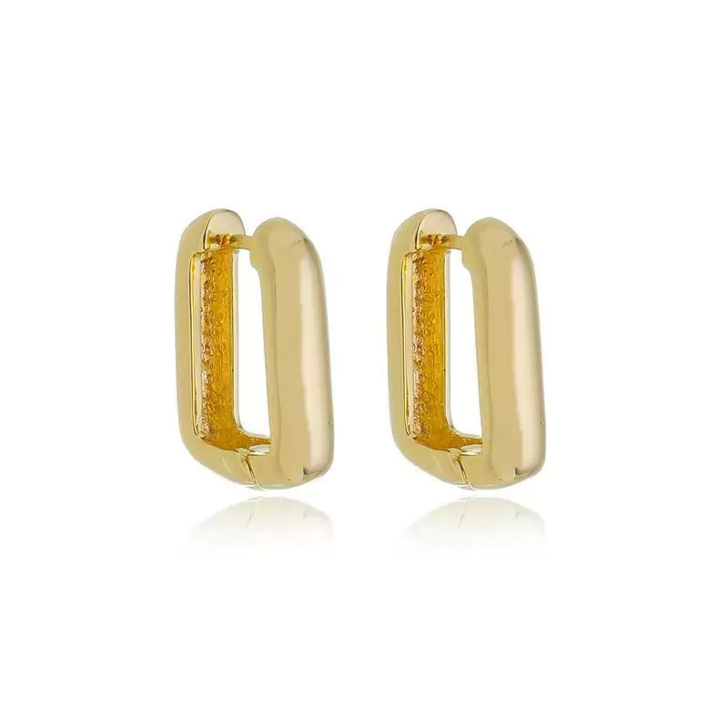 BRINCO MODELO ARGOLA EM FORMATO RETAGULAR, EXTREMAMENTE LEVE E CONFORTÁVEL. DISPONÍVEL NO BANHO DE OURO 18K E RÓDIO BRANCO.
