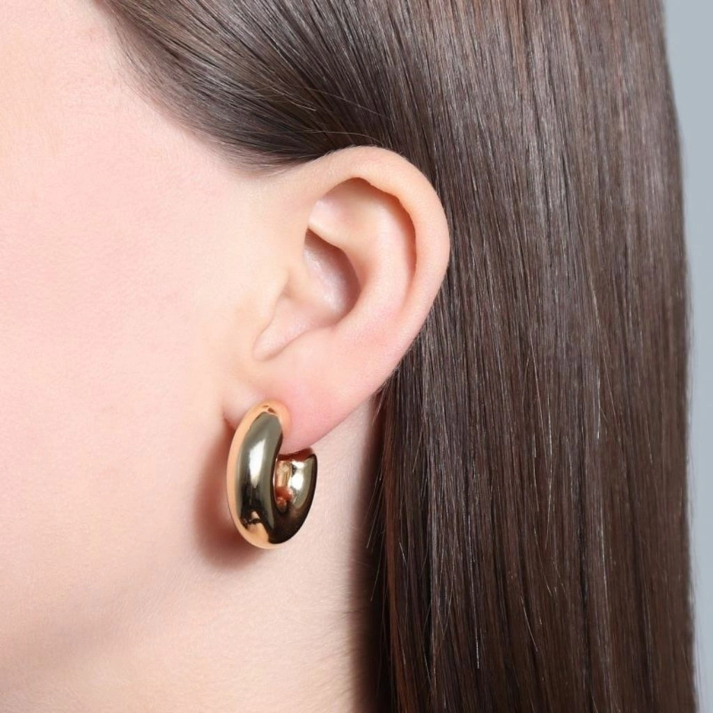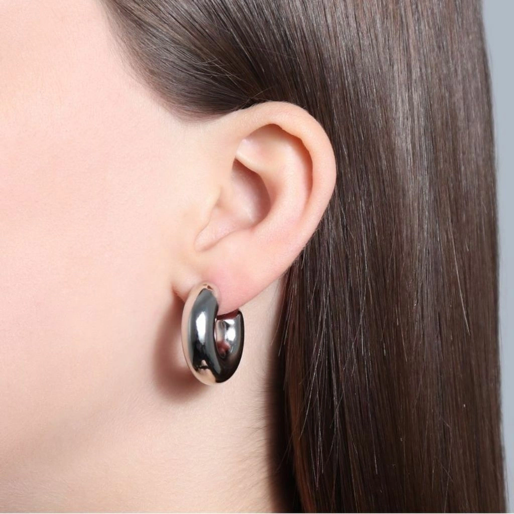 BRINCO MODELO ARGOLA EM FORMATO TUBULAR LISO DE TAMANHO PEQUENO, UM MODELO CLÁSSICO E ATEMPORAL. DISPONÍVEL NO BANHO DE OURO 18K E RÓDIO BRANCO.