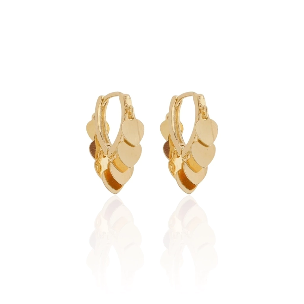 BRINCO NO MODELO ARGOLINHA CLICK COM DETALHES DE PLAQUINHAS PENDENTES QUE DÃO UM MOVIMENTO E BRLHO PERFEITO. DISPONÍVEL NO BANHO DE OURO 18K E RÓDIO BRANCO.