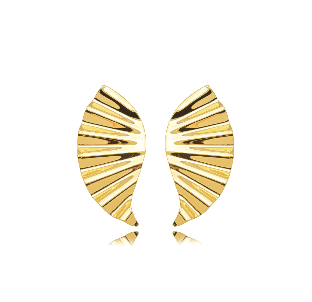 BRINCO DE TAMANHO GRANDE PORÉM LEVE E EXTREMAMENTE CONFORTÁVEL, ACABAMENTO FRISADO. DISPONÍVEL NO BANHO DE OURO 18K E RÓDIO BRANCO.