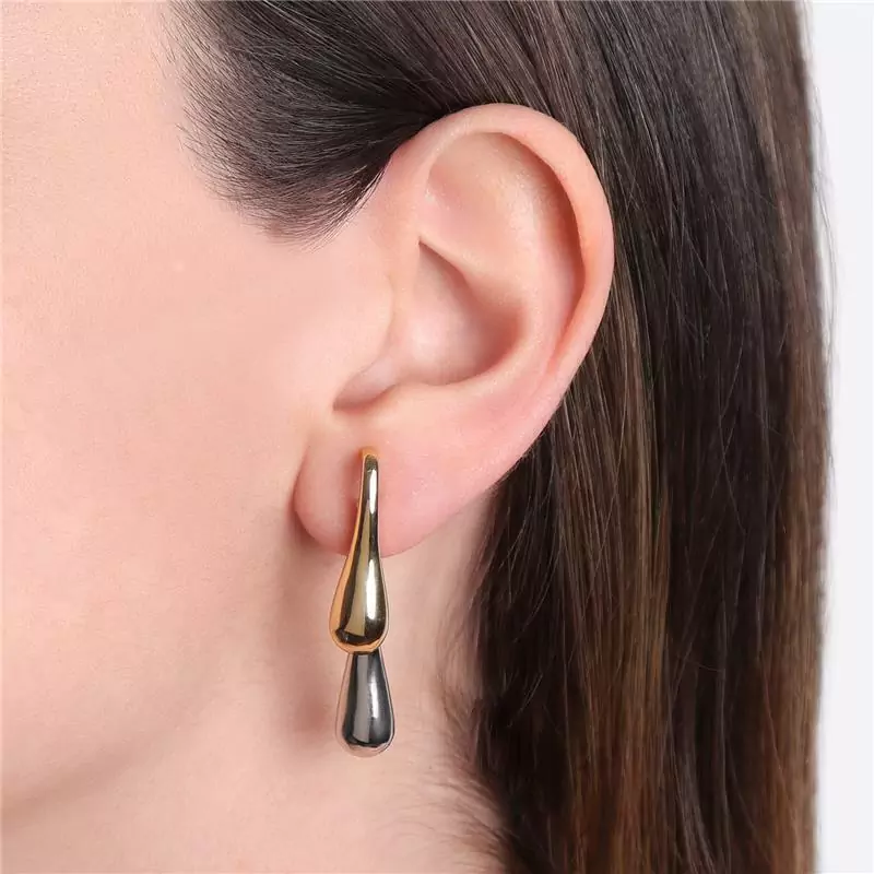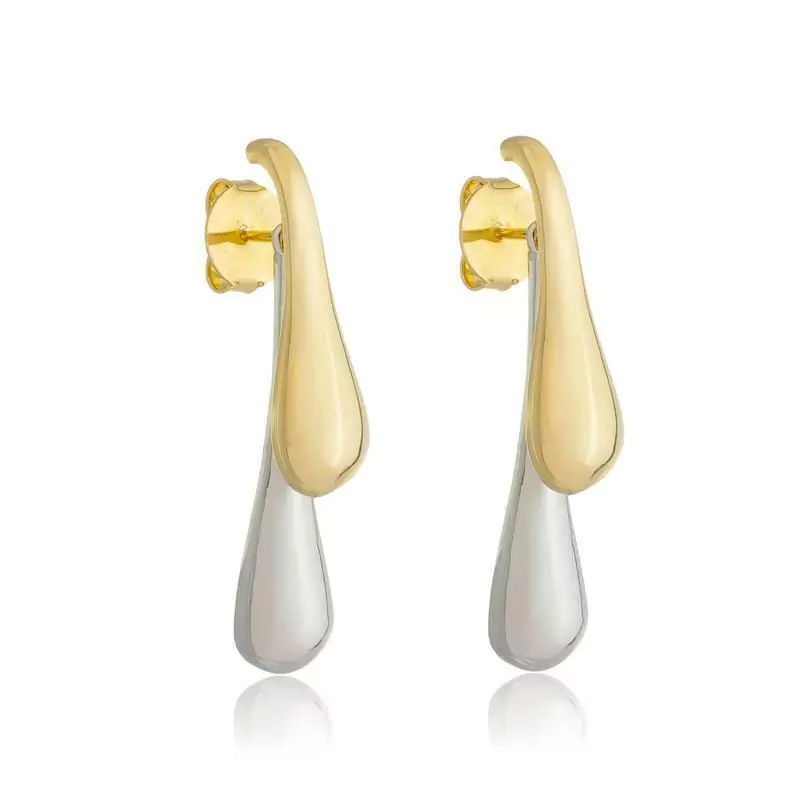 BRINCO DUAS GOTAS COM MIX DE BANHO OURO E RÓDIO BRANCO, PEÇA DESMONTÁVEL PARA USAR DE DUAS FORMAS, LEVE E CONFORTÁVEL .