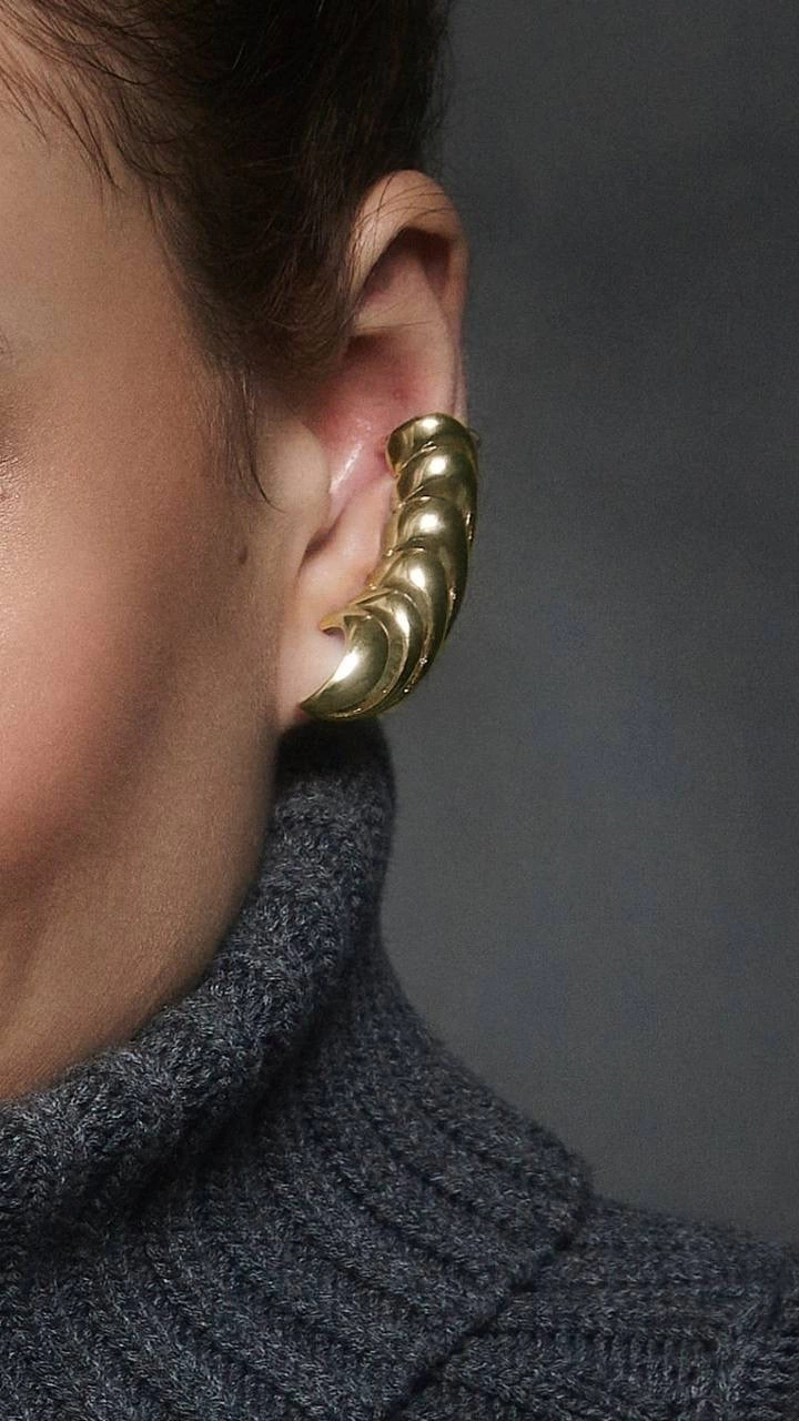 BRINCO MODELO EAR CUFF EM FORMATO ESCAMA QUE PREENCHE A ORELHA, SUPER MODERNO E ESTILOSO. DISPONÍVEL NO BANHO DE OURO 18K E RÓDIO BRANCO.