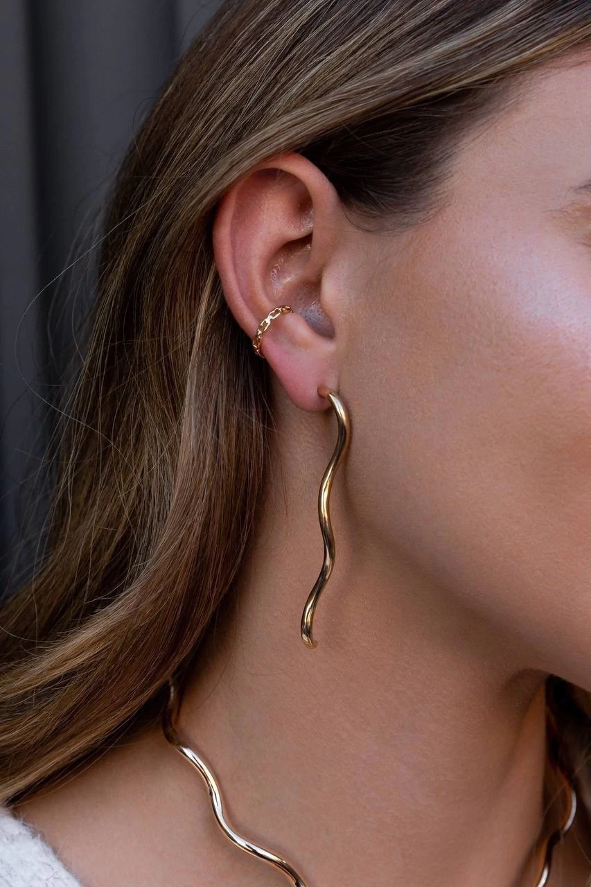 BRINCO MODELO RÍGIDO COM DETALHE TORCIDO. EXTREMAMENTE LEVE E CONFORTÁVEL. DISPONÍVEL NO BANHO DE OURO 18K E RÓDIO BRANCO.