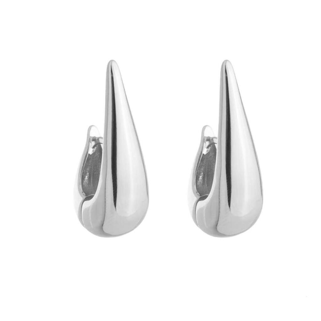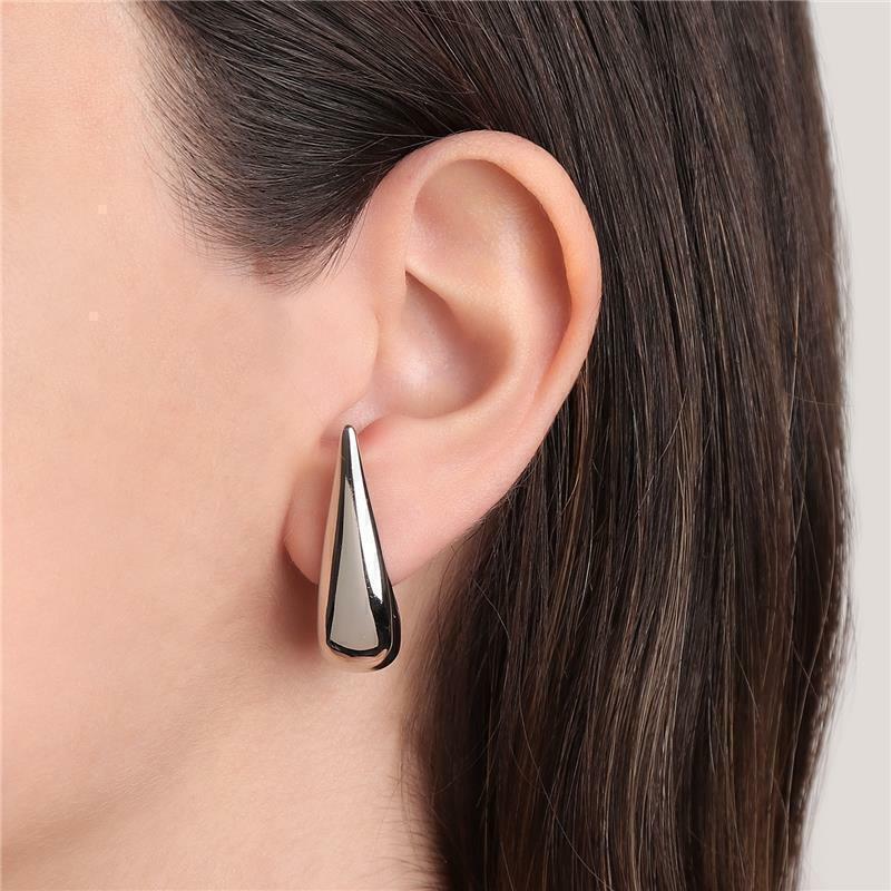 BRINCO EM FORMATO DE GOTA ALONGADA COM ACABAMENTO POLIDO LISO E FECHO CLICK, EXTREMAMENTE LEVE E CONFORTÁVEL. DISPONÍVEL NO BANHO DE OURO 18K E RÓDIO BRANCO.