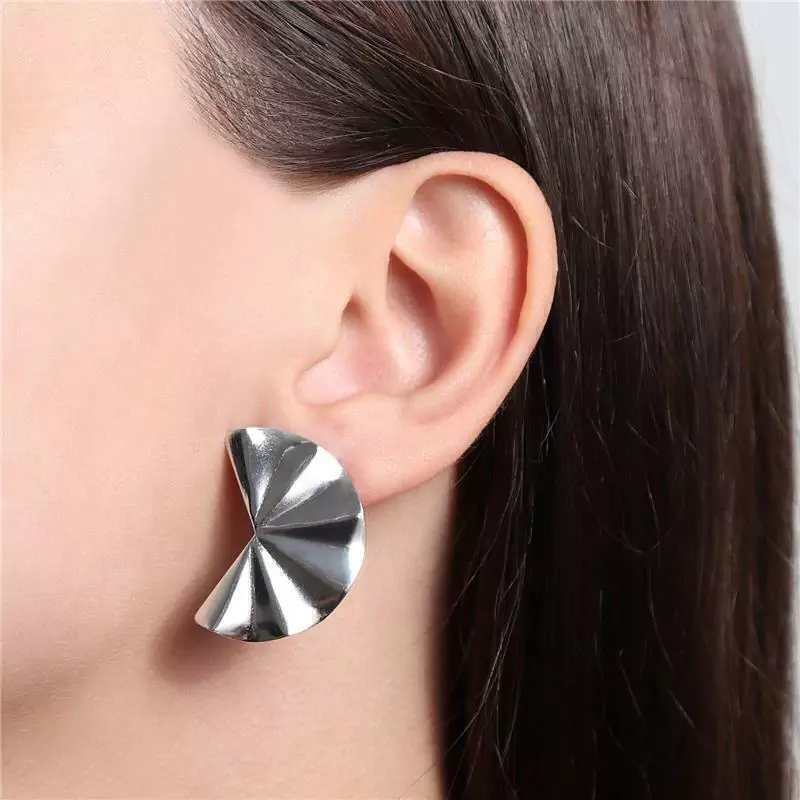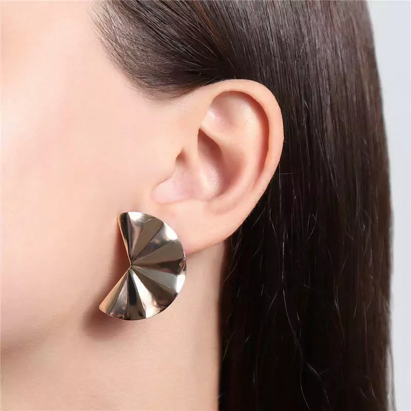 BRINCO EM FORMATO LEQUE COM ACABAMENTO ORGÂNICO. EXTREMAMENTE LEVE E CONFORTÁVEL. DISPONÍVEL NO BANHO DE OURO 18K E RÓDIO BRANCO.