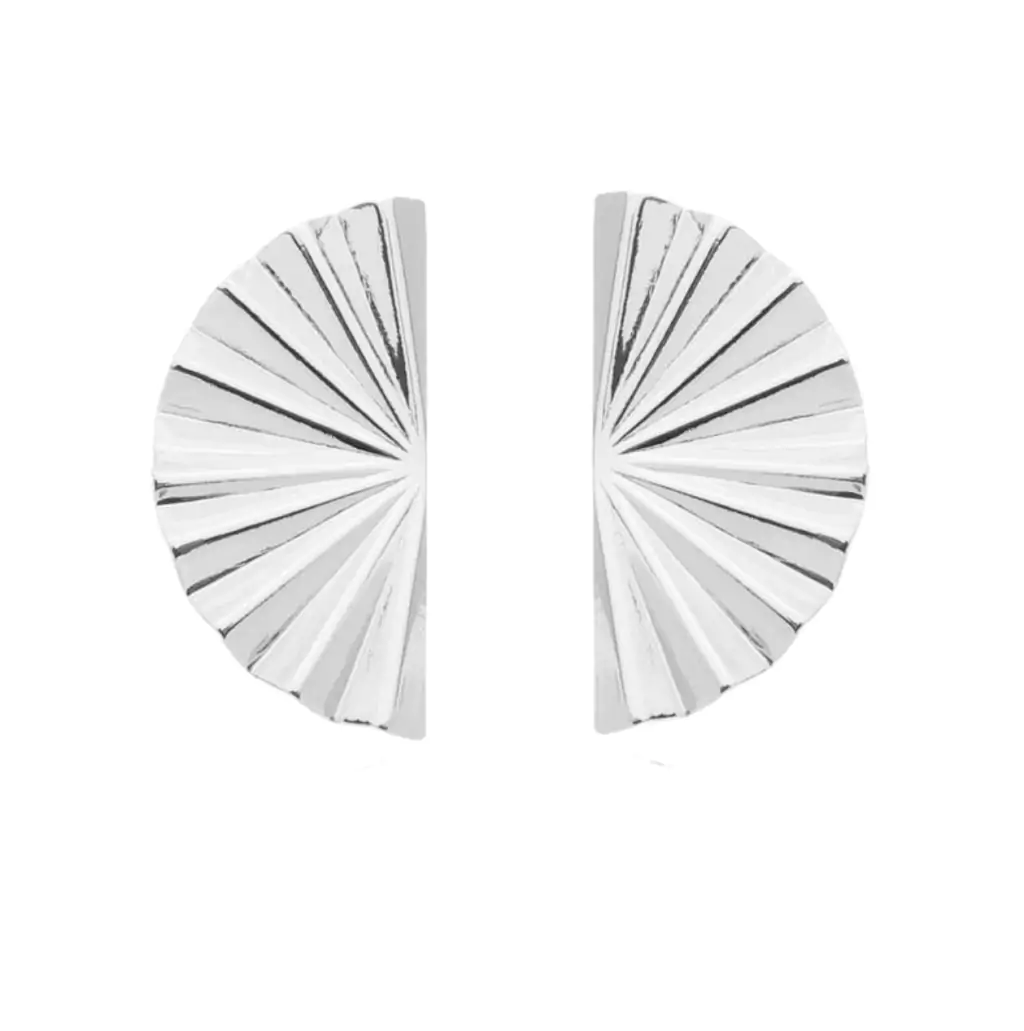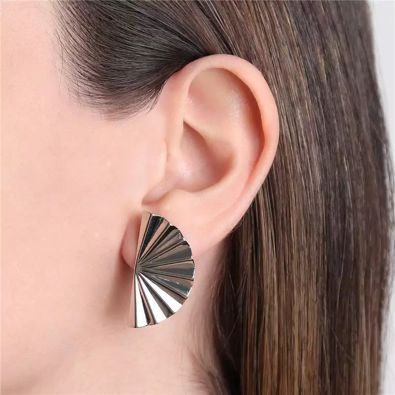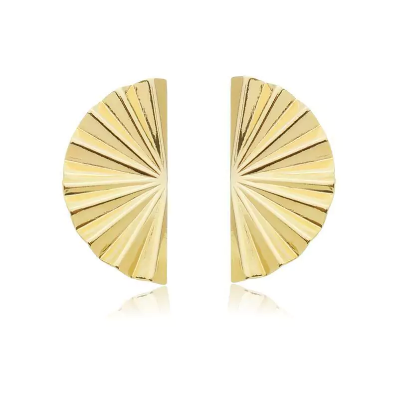 BRINCO EM FORMATO LEQUE COM DETALHE FRISADO, LEVE E CONFORTÁVEL. DISPONÍVEL NO BANHO DE OURO 18K E RÓDIO BRANCO.
