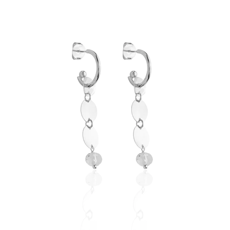 BRINCO MODELO ARGOLA COM PENDENTE EM MOEDINHAS E UM CRISTAL, EXREMAMENTE LEVE E CONFORTÁVEL. DISPONÍVEL NO BANHO DE OURO 18K E RÓDIO BRANCO.
