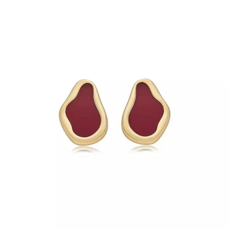 BRINCO EM FORMATO ORGÂNICO COM DETALHE EM ACRÍLICO NA COR MARSALA, EXREMAMENTE LEVE E CONFORTÁVEL. DISPONÍVEL NO BANHO DE OURO 18K E RÓDIO BRANCO.