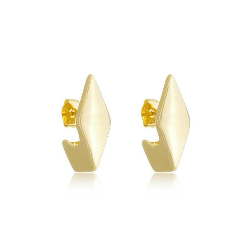 BRINCO DE TAMANHO MÉDIO EM FORMATO DE LOSANGO NO ACABAMENTO POLIDO LISO. DISPONÍVEL NO BANHO DE OURO 18K E RÓDIO BRANCO.