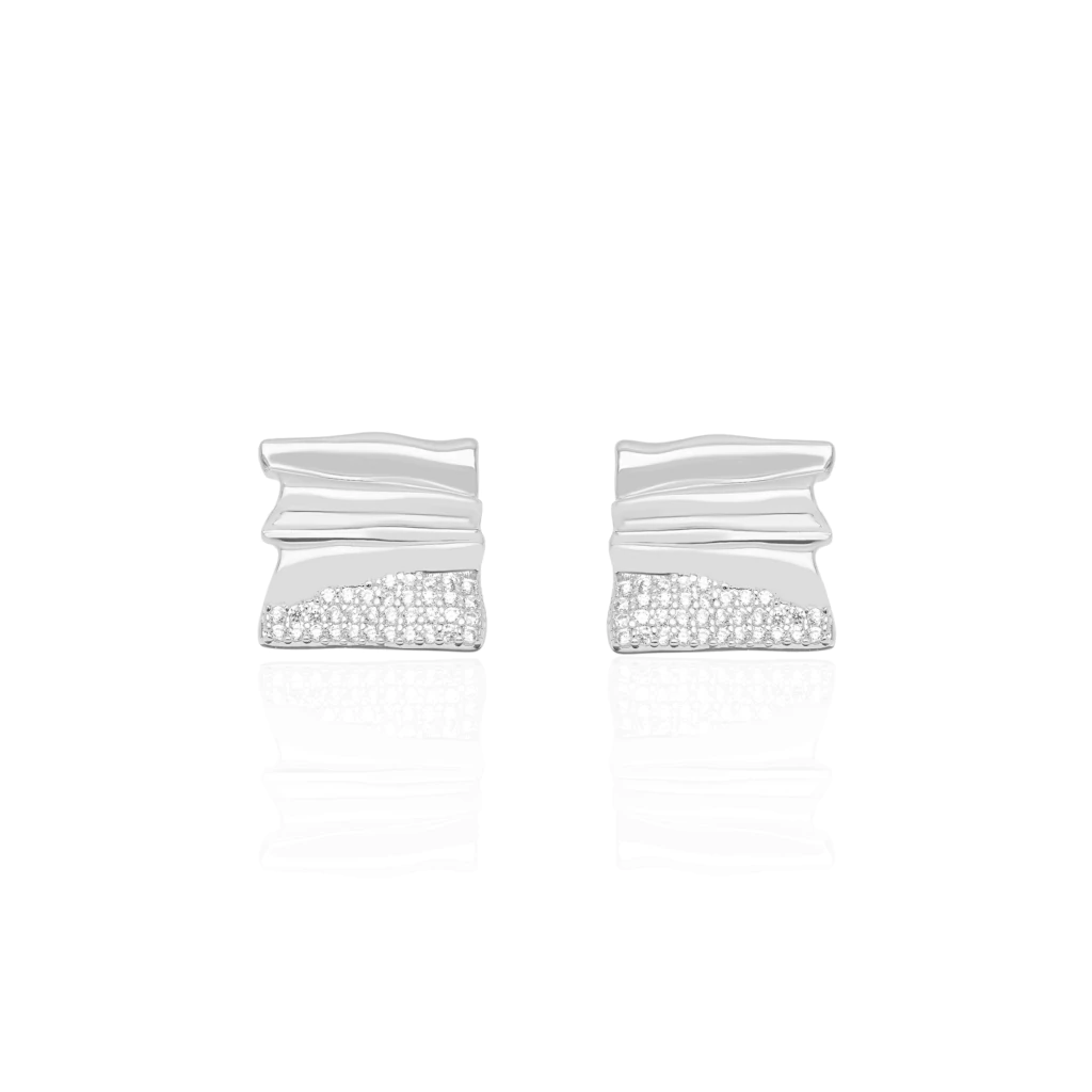 BRINCO MODERNO EM FORMATO QUADRADO COM DETALHES ORGÂNICOS E CRAVAÇÃO EM MICRO ZIRCÔNIA CRISTAL. DISPONÍVEL NO BANHO DE OURO 18K E RÓDIO BRANCO.