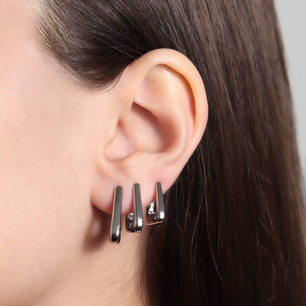 BRINCO TRIO DE ARGOLINHAS EM FORMATO TRIANGULAR. DISPONÍVEL NO BANHO DE OURO 18K E RÓDIO BRANCO.