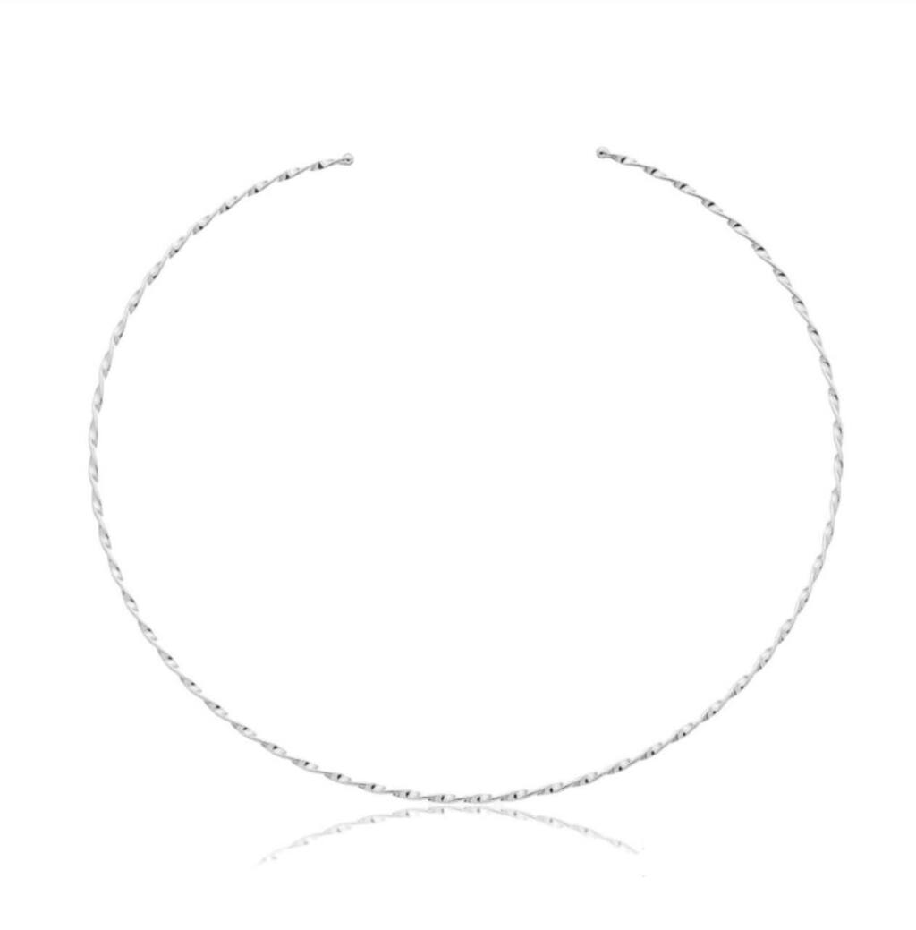 COLAR MODELO DE ARO RÍGIDO TORCIDINHO. DISPONÍVEL NO BANHO DE OURO 18K E RÓDIO BRANCO.