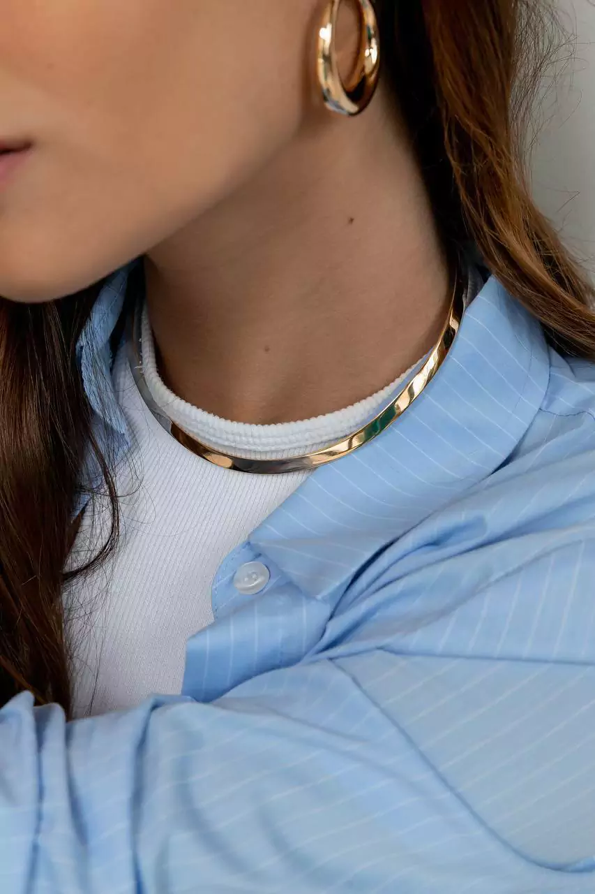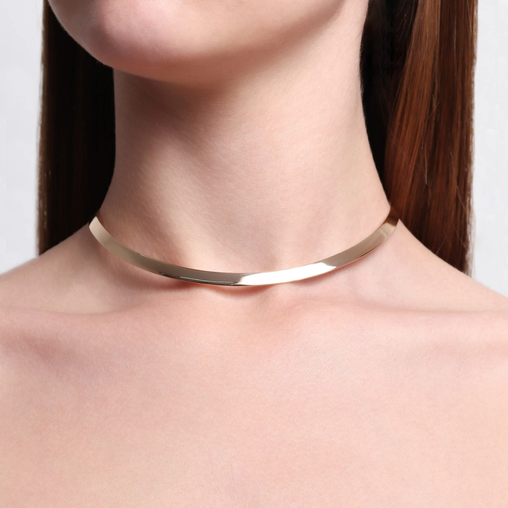 COLAR MODELO DE ARO RÍGIDO. DISPONÍVEL NO BANHO DE OURO 18K E RÓDIO BRANCO.