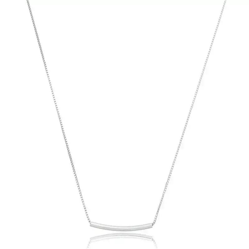 COLAR EM CORRENTE VENEZIANA COM DETALHE DE TUBINHO NO ACABAMENTO LISO . DISPONÍVEL NO BANHO DE OURO 18K E RÓDIO BRANCO.