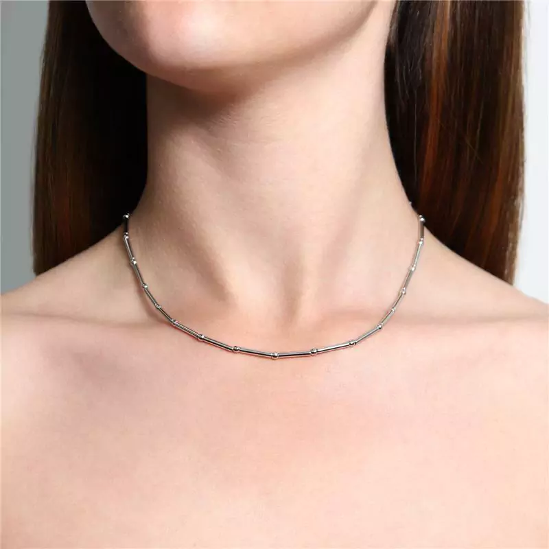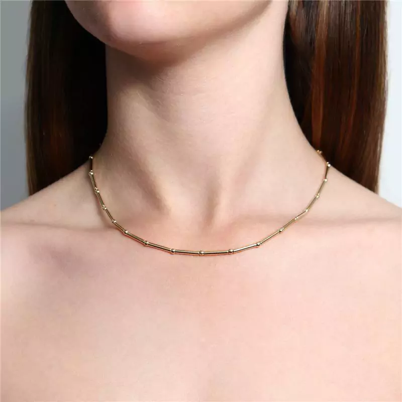 COLAR COM CANUTILHO E MINI ESFERAS. DISPONÍVEL NO BANHO DE OURO 18K E RÓDIO BRANCO.