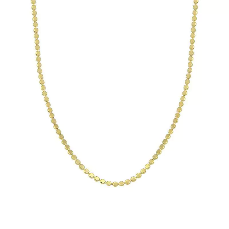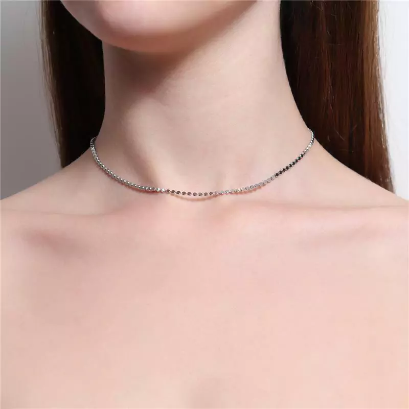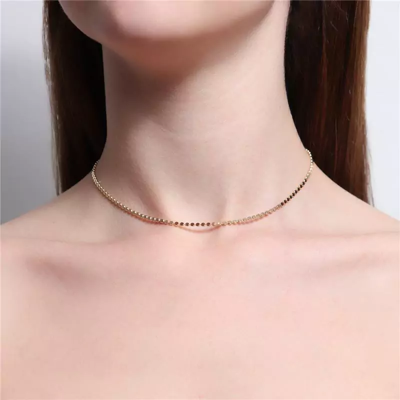 COLAR MODELO CHOKER COM MINI ESFERAS ACHATADAS. DISPONÍVEL NO BANHO DE OURO 18K E RÓDIO BRANCO.