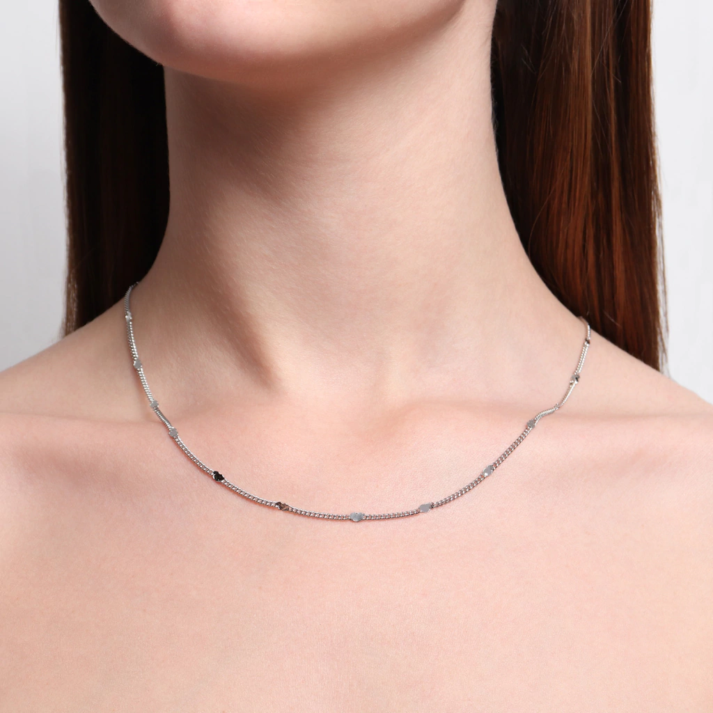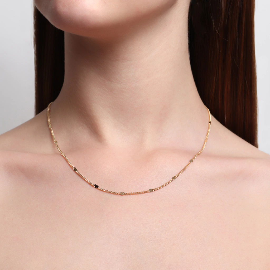 COLAR MODELO CHOKER COM MINI CORAÇÕES NA CORRENTE. DISPONÍVEL NO BANHO DE OURO 18K E RÓDIO BRANCO.