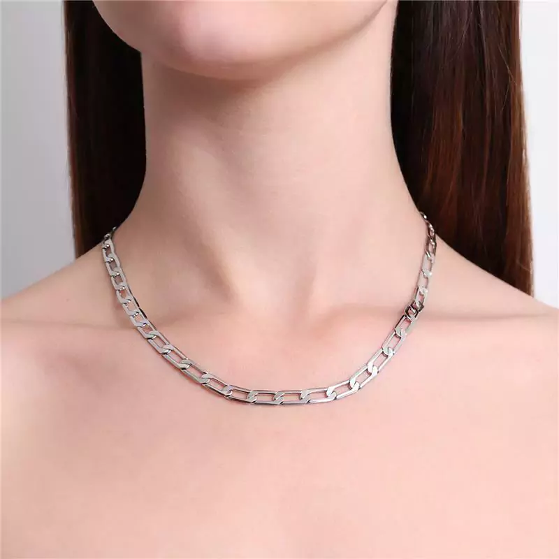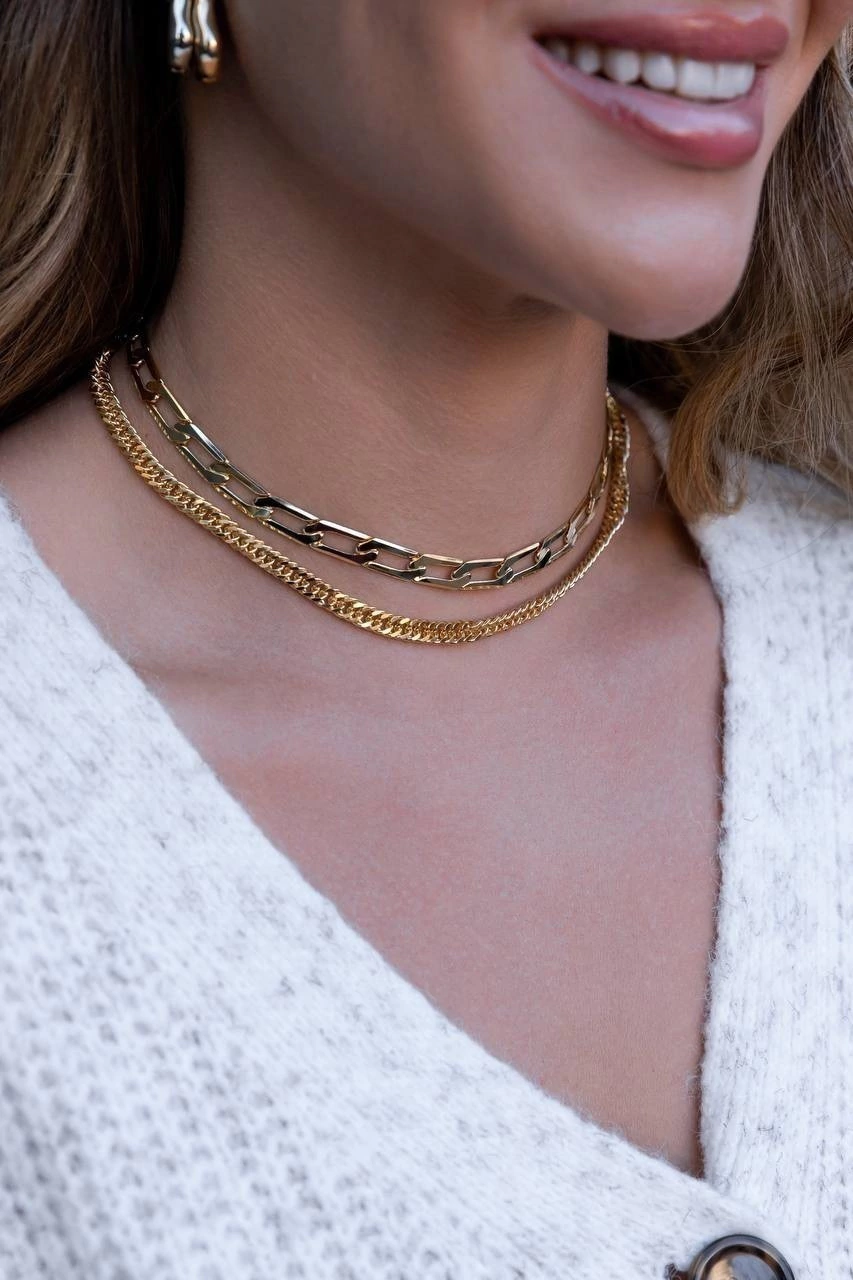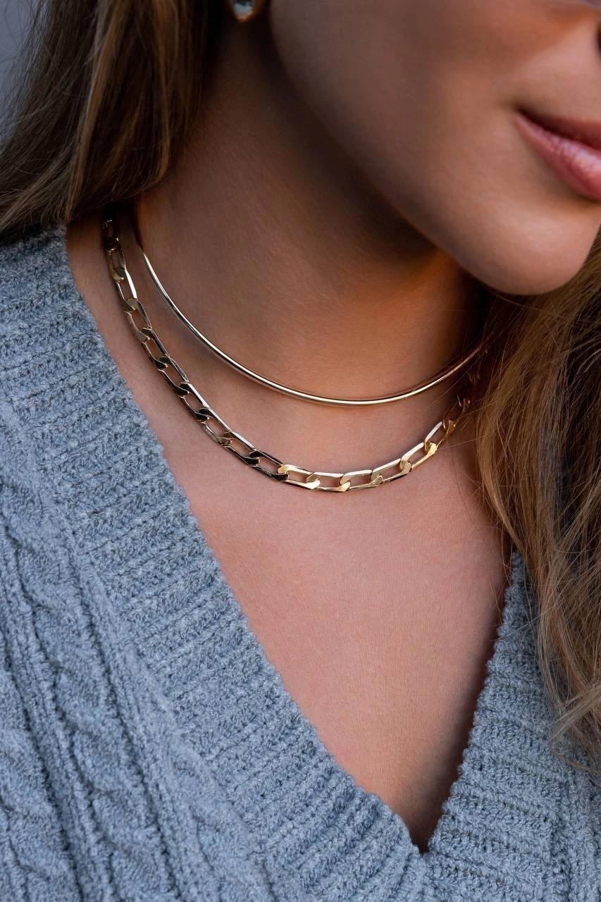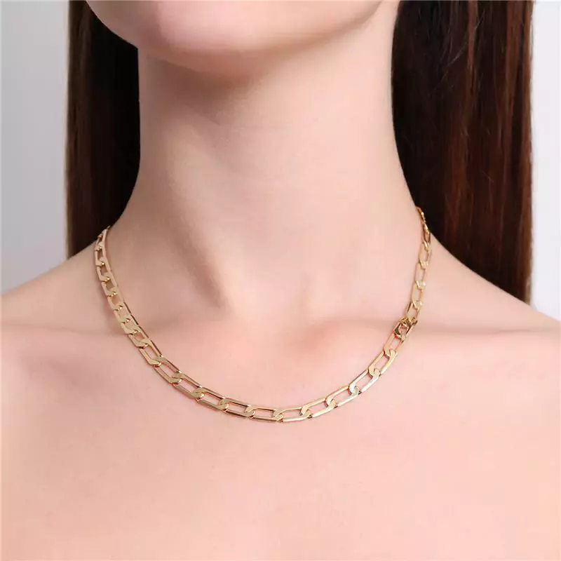 COLAR MODELO CHOKER EM ELO MAIS ALONGADO ACHATADO. DISPONÍVEL NO BANHO DE OURO 18K E RÓDIO BRANCO.