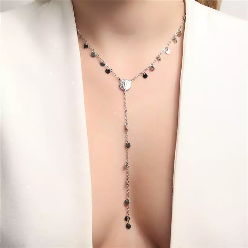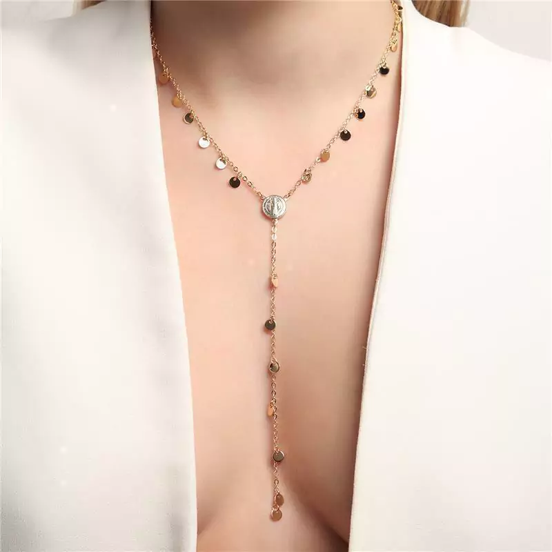 COLAR DELICADO MODELO GRAVATINHA COM PINGENTE SÃO BENTO E MEDALHINHAS . DISPONÍVEL NO BANHO DE OURO 18K E RÓDIO BRANCO.