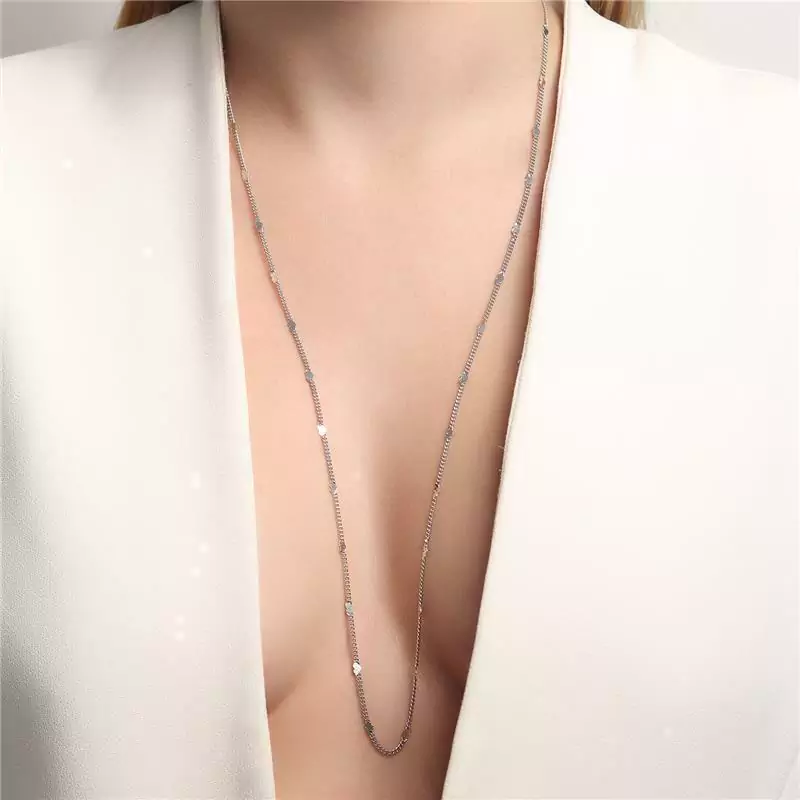 COLAR LONGO COM MINI CORAÇÕES NA CORRENTE. DISPONÍVEL NO BANHO DE OURO 18K E RÓDIO BRANCO.