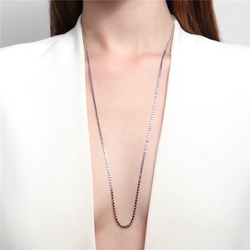 COLAR MODELO LONGO COM MINI ESFERAS ACHATADAS. DISPONÍVEL NO BANHO DE OURO 18K E RÓDIO BRANCO.