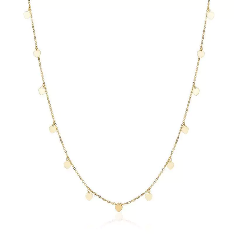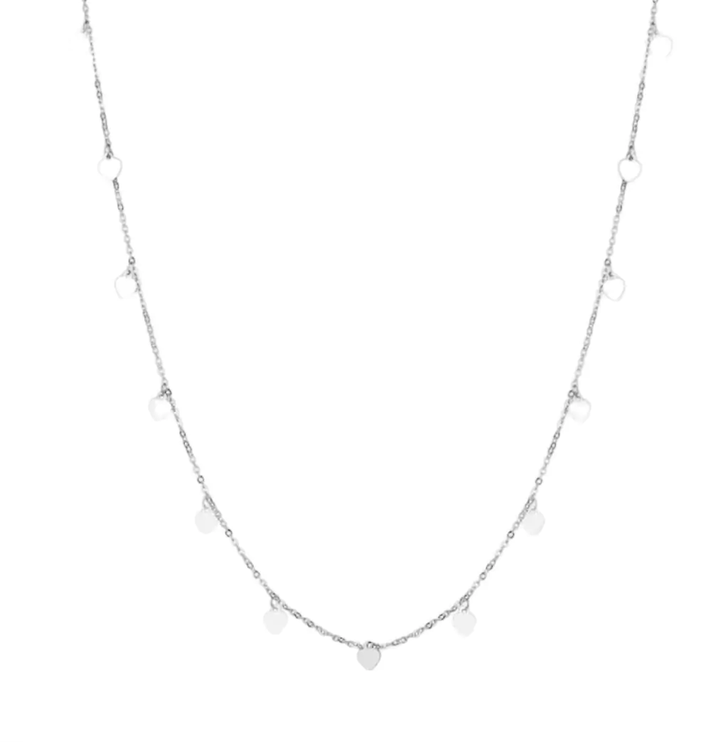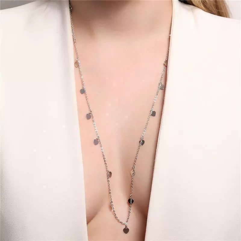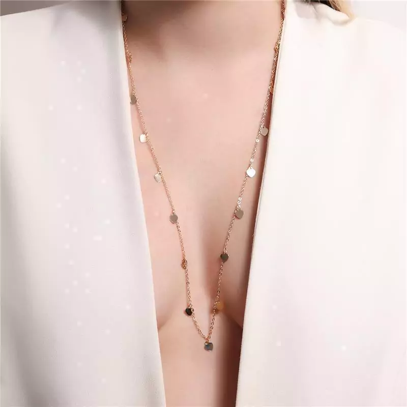 COLAR LONGO COM PINGENTES ESPASSADOS EM FORMATO DE CORAÇÃO. DISPONÍVEL NO BANHO DE OURO 18K E RÓDIO BRANCO.