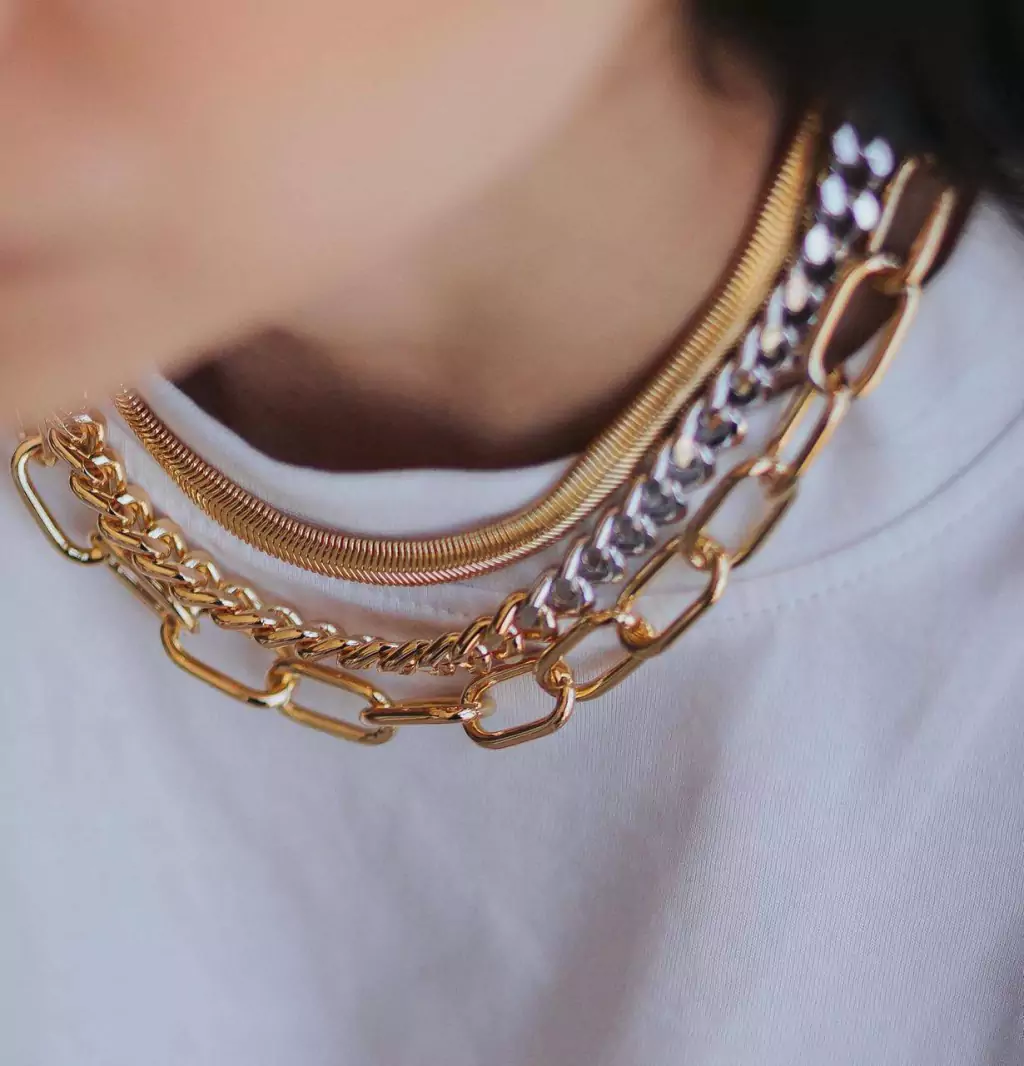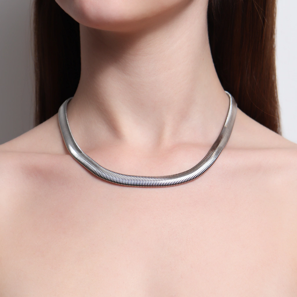 COLAR MALHA NA ESPESSURA MAIS LARGA. DISPONÍVEL NO BANHO DE OURO 18K E RÓDIO BRANCO.