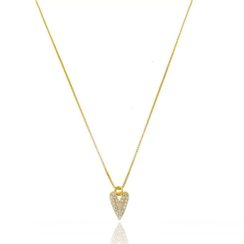 COLAR CORRENTE VENEZIANA COM PINGENTE EM FORMATO DE CORAÇÃO TODO CRAVEJADO EM MICRO ZIRCÔNIA CRISTAL. DISPONÍVEL NO BANHO DE OURO 18K E RÓDIO BRANCO.