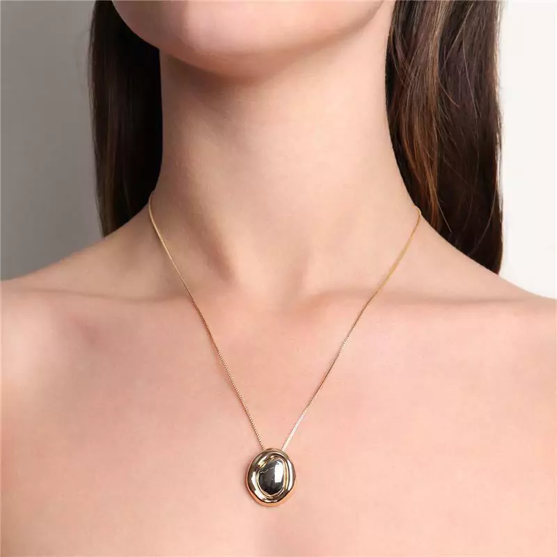 COLAR COM PINGENTE OVAL ORGÂNICO EM MISTURA DE BANHOS OURO 18K E RÓDIO BRANCO. DISPONÍVEL NO BANHO DE OURO 18K E RÓDIO BRANCO.