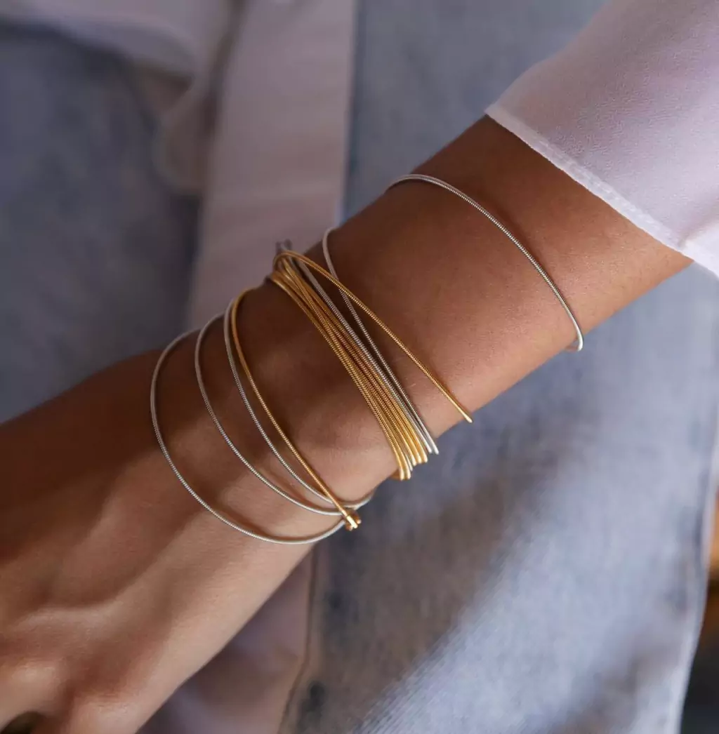 PULSEIRA DELICADA PARA USAR EM VÁRIAS VOLTAS, VESTE BEM TANTO O PULSO FINO QUANTO O PULSO MAIS LARGO. DISPONÍVEL NO BANHO DE OURO 18K E RÓDIO BRANCO.