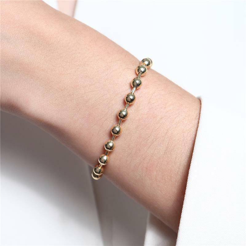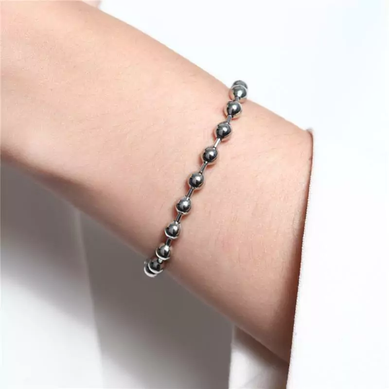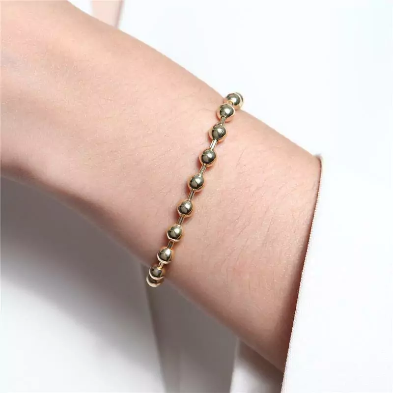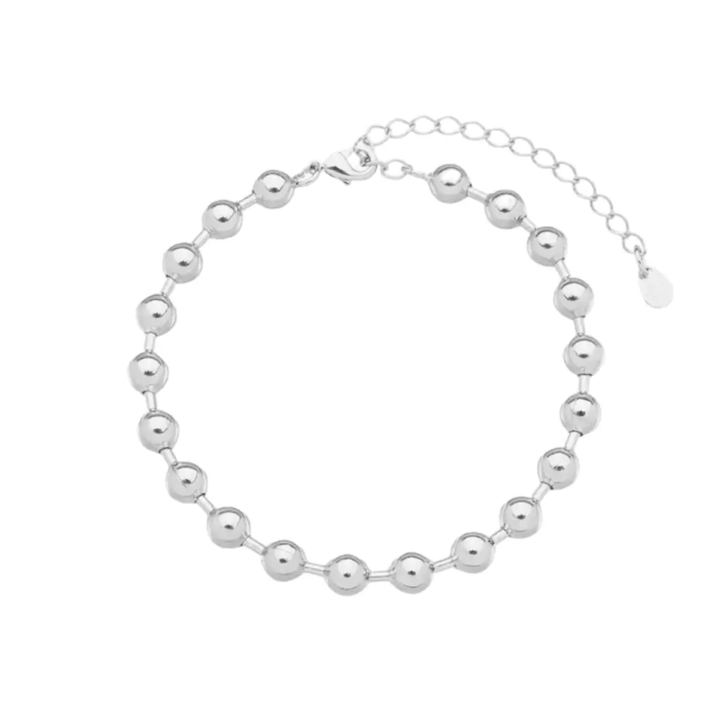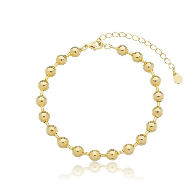 PULSEIRA EM ESFERAS LISAS, VESTE BEM TANTO O PULSO FINO QUANTO O PULSO MAIS LARGO. DISPONÍVEL NO BANHO DE OURO 18K E RÓDIO BRANCO.