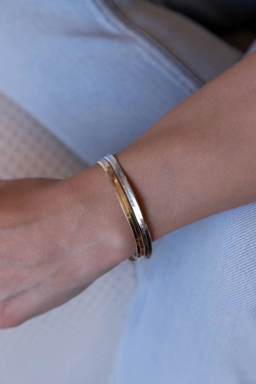 PULSEIRA DELICADA EM FITA DE 0,4MM VESTE BEM TANTO O PULSO FINO QUANTO O PULSO MAIS LARGO. DISPONÍVEL NO BANHO DE OURO 18K E RÓDIO BRANCO.
