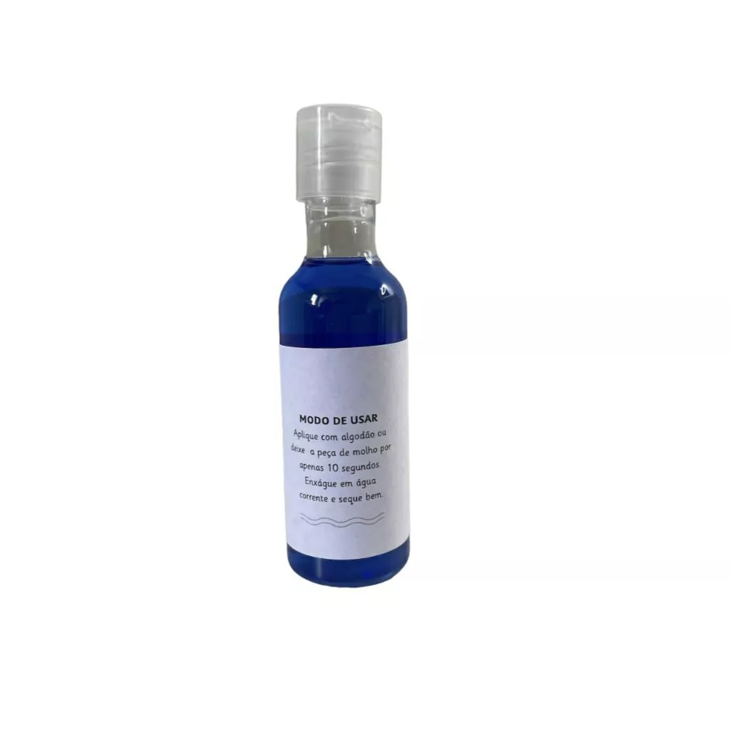 MODO DE USAR: aplique com algodão ou deixe a peça de molho por apenas 10 segundos. Enxague em água corrente e seque bem. Resultado imediato.