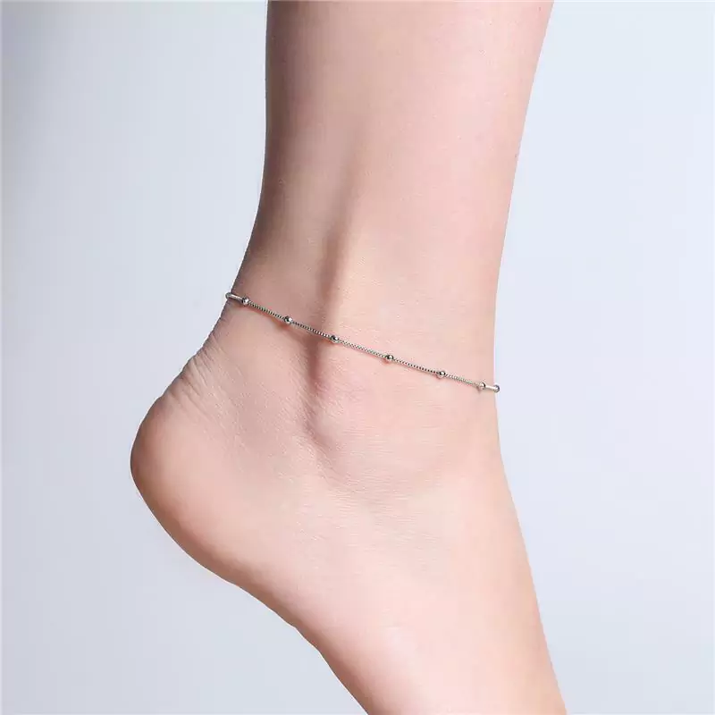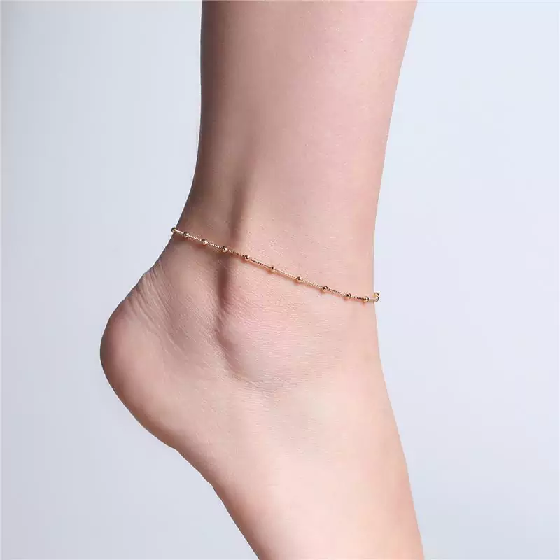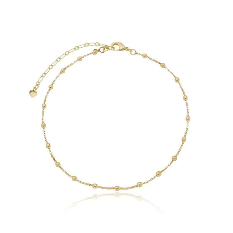 TORNOZELEIRA DELICADA EM VENEZIANA COM MINI BOLINHAS. DISPONÍVEL NO BANHO DE OURO 18K E RÓDIO BRANCO.