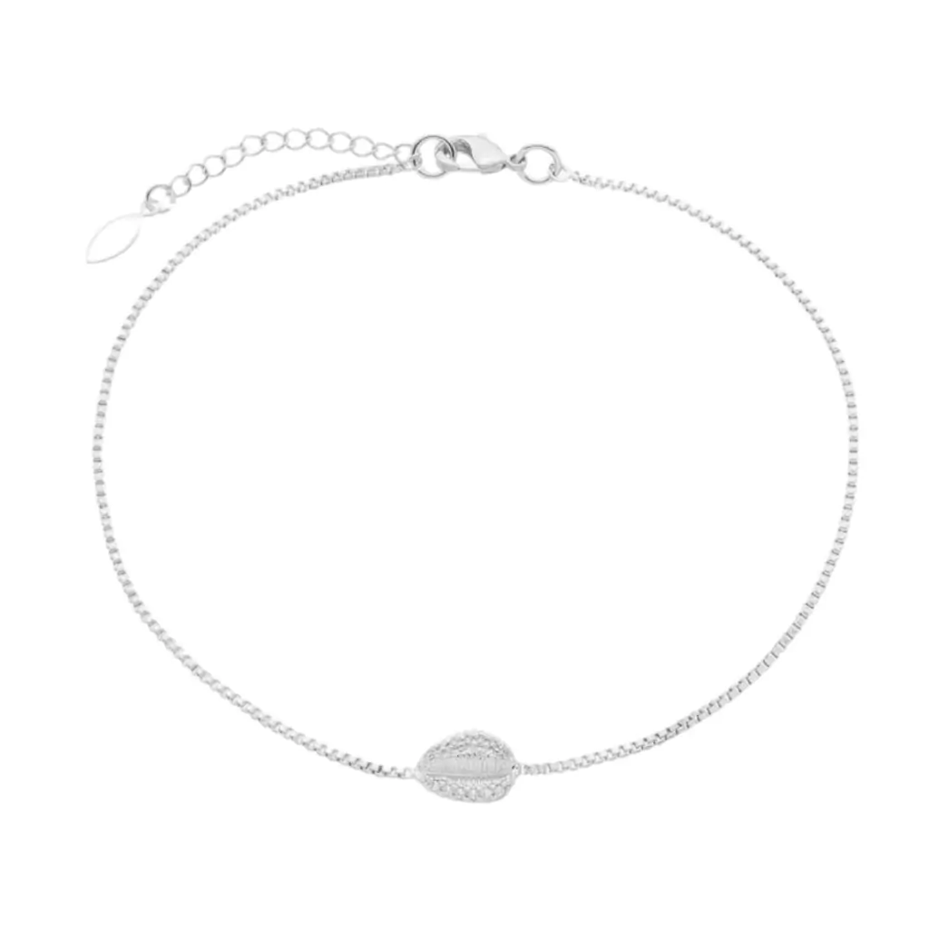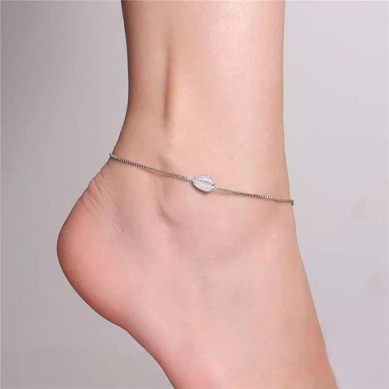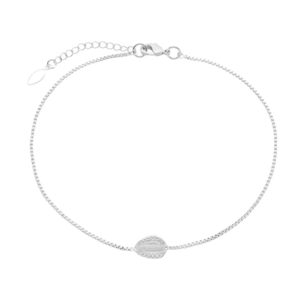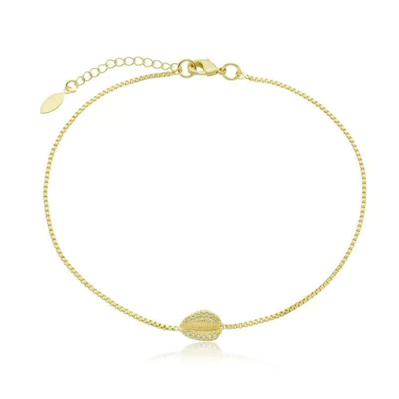 TORNOZELEIRA DELICADA EM CORRENTE VENEZIANA COM BUZIO CRAVEJADO EM MICRO ZIRCÔNIA CRISTAL. DISPONÍVEL NO BANHO DE OURO 18K E RÓDIO BRANCO.