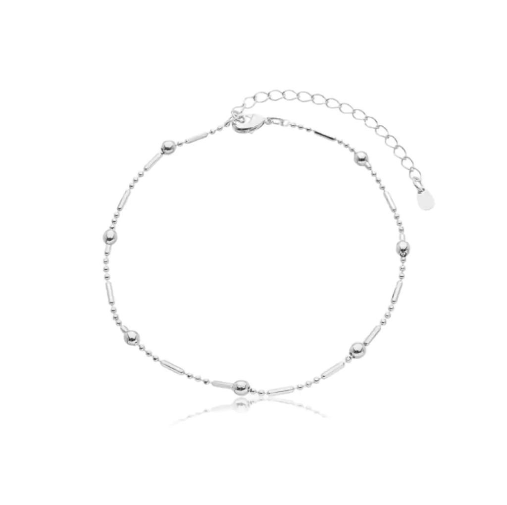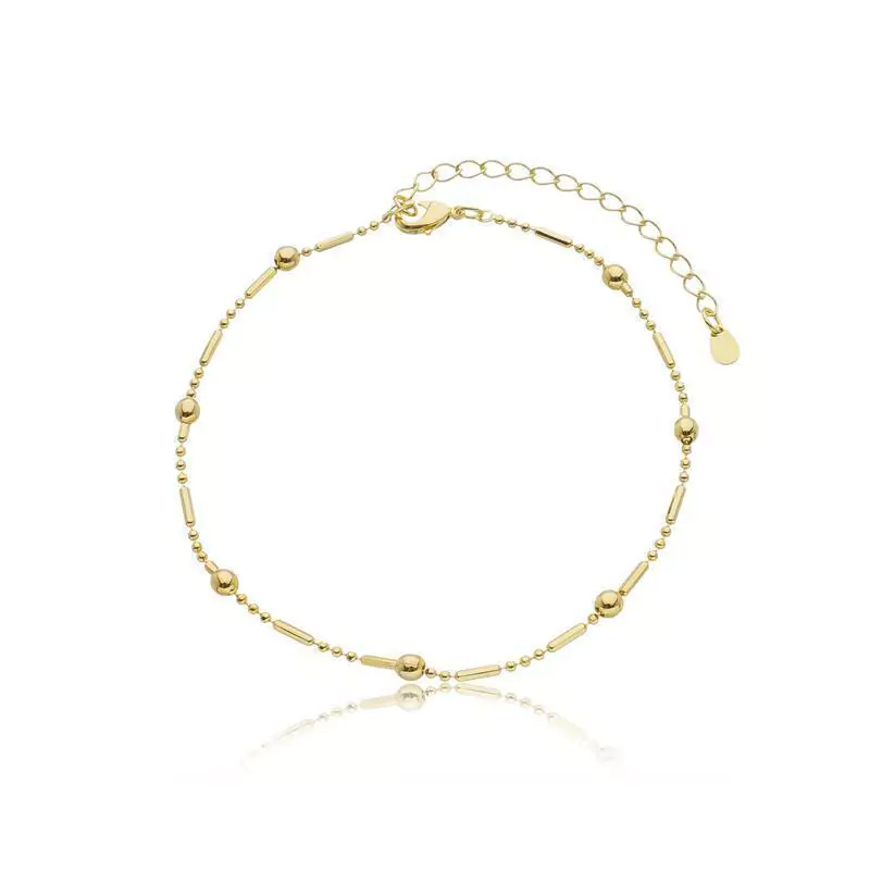 TORNOZELEIRA DELICADA COM CANUTILHO E BOLINHAS. DISPONÍVEL NO BANHO DE OURO 18K E RÓDIO BRANCO.